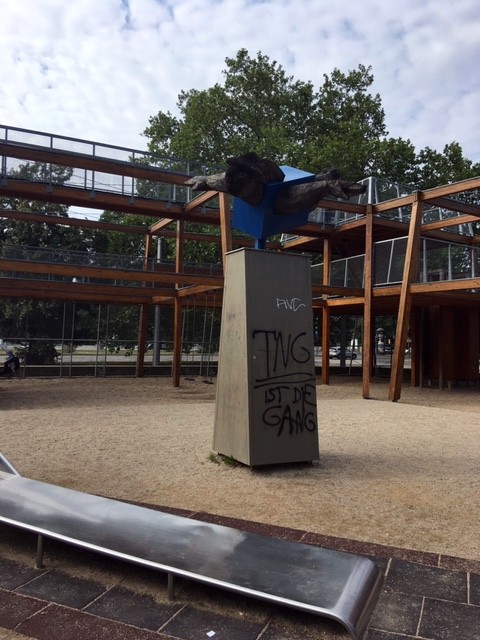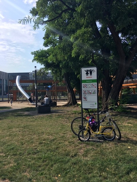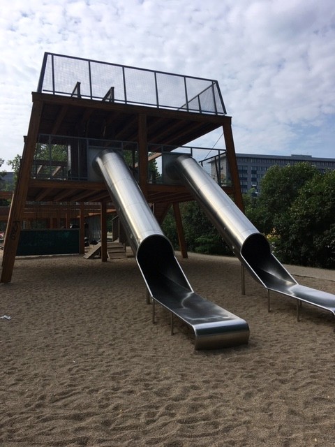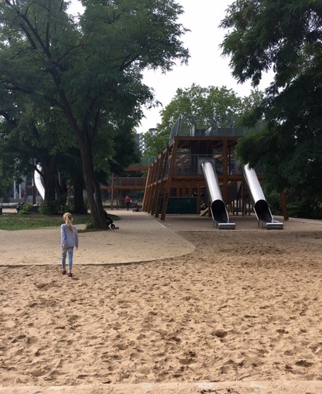 В самом центре города, напротив «Altmarkt Galerie” есть замечательная и большая площадка с башней для лазания («бастионом») высотой целых 6 метров. Даже взрослые могут туда забраться. А уже спуститься — на одной из трёх больших Горок. Ещё здесь есть качели, причём также и для самых маленьких, батут, большая песочница, «дорога» для велосипедов или роликов. Также большой плюс, что площадка огорожена забором, поэтому ее можно назвать относительно безопасной. Есть лавочки, где можно посидеть в тени деревьев.