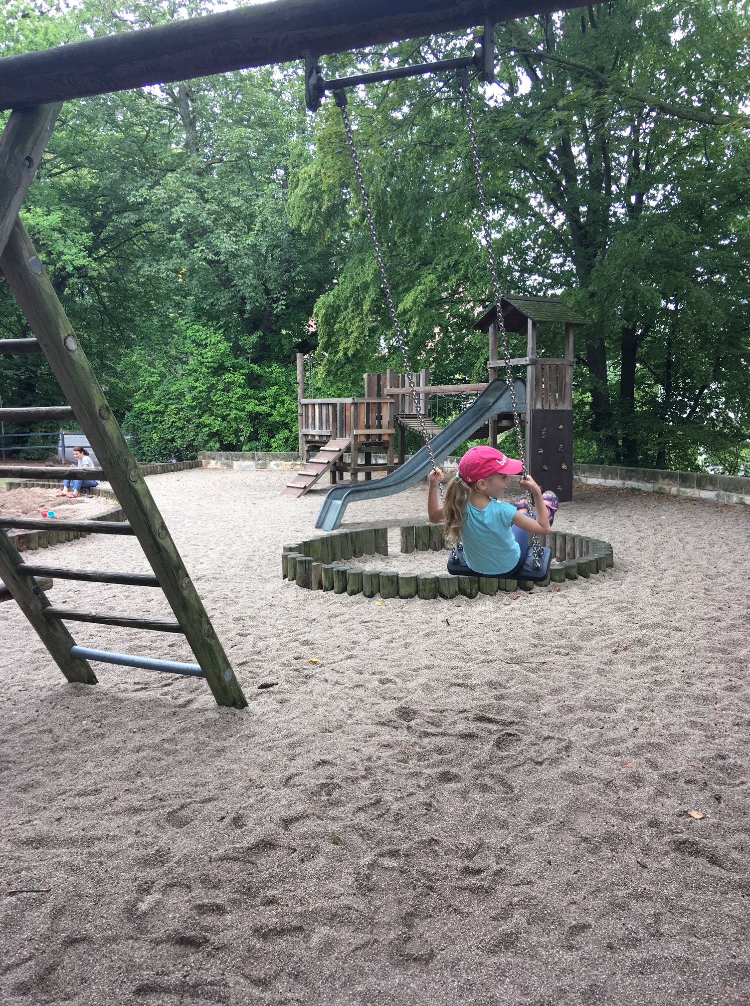 На детской площадке — покататься на качелях или спуститься с горки, поиграться в песочнице или посидеть в беседке, есть также и столы для настольного тенниса.