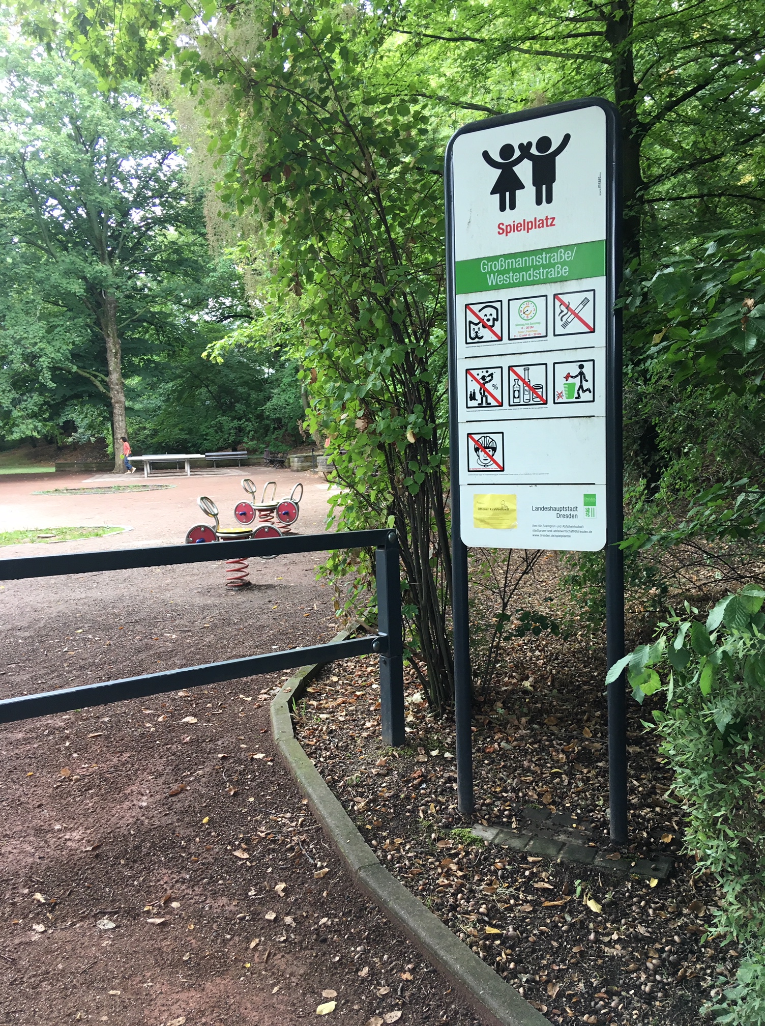 Ещё один уютный парк с богатой историей. В середине 19 века, когда Plauen ещё был отдельной деревней, а не дрезденским районом, было решено создать целый квартал для зажиточных граждан — с виллами и зелёным парком, где они могли бы отдыхать. Парк, который в то время назывался Westendpark, пользовался большой популярностью — здесь было кафе и трактир, пруд с ручейком и детская площадка, сцена для выступлений и Каспер-театр для детей. В парке проводились концерты, музыкальные конкурсы и даже церковные богослужения. В 1920-х годах парк украсили 8 скульптур, которые символизировали 4 типа темперамента и настроения человека. Увы, после войны осталось только две статуи: фигура мальчика с дельфином, что означает «Радость» и фигура мальчика с лягушкой, обозначающая «Хандру».