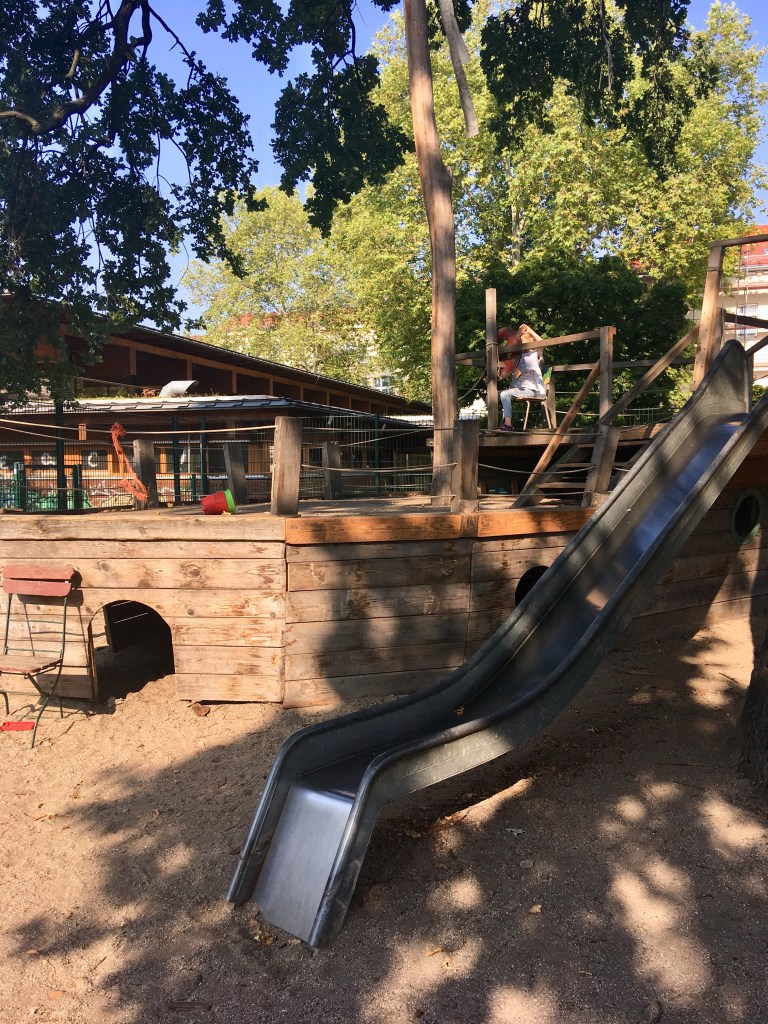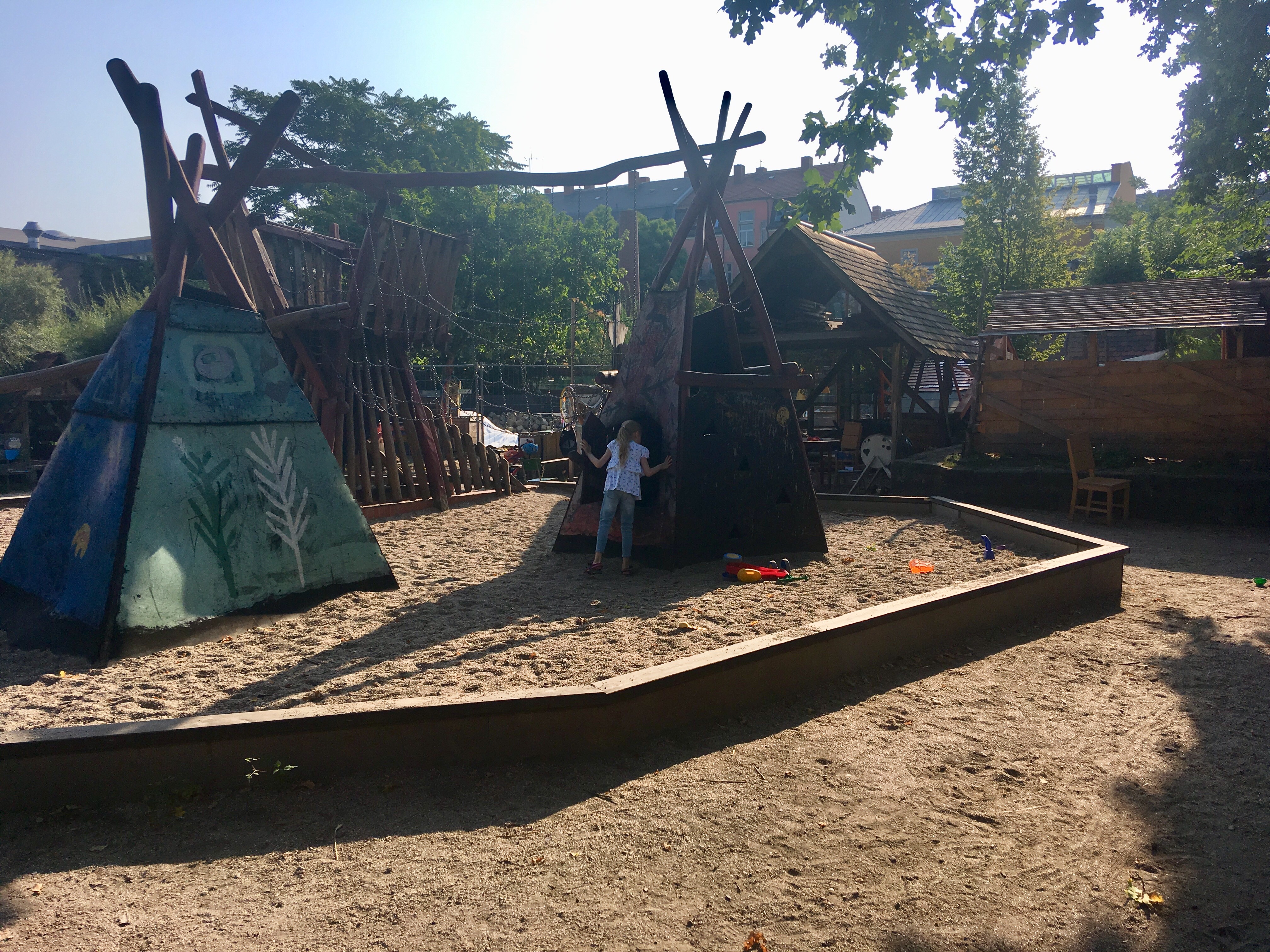 “Приключенческая детская площадка” или “Двор приключений” Панама — одна из самых любимых и популярных в дрезденском Нойштадте. Её и детской площадкой назвать-то нельзя. Здесь с детьми работают педагоги, на территории живут животные, за которыми можно ухаживать, а на самой площадке дети могут (но и должны) играть без взрослых. Необычно, правда?