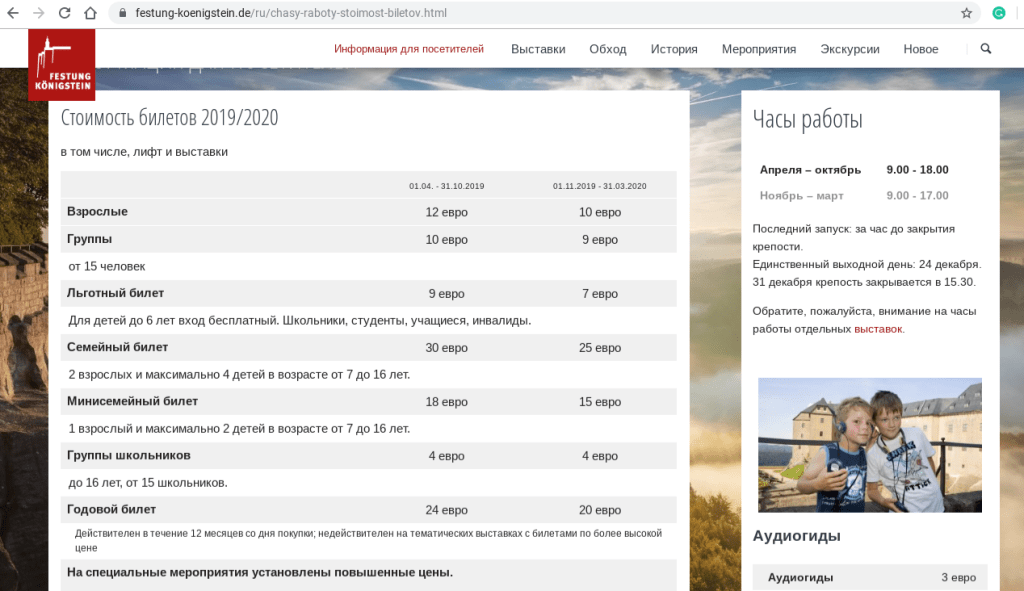 К слову, на сайте Крепости Кёнигштайн есть функция перевода на русский язык. Там есть вся необходимая информация про стоимость билетов и список предстоящих мероприятий: