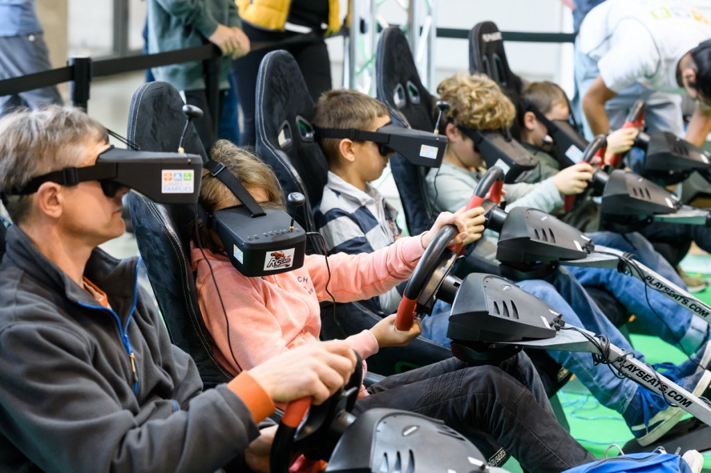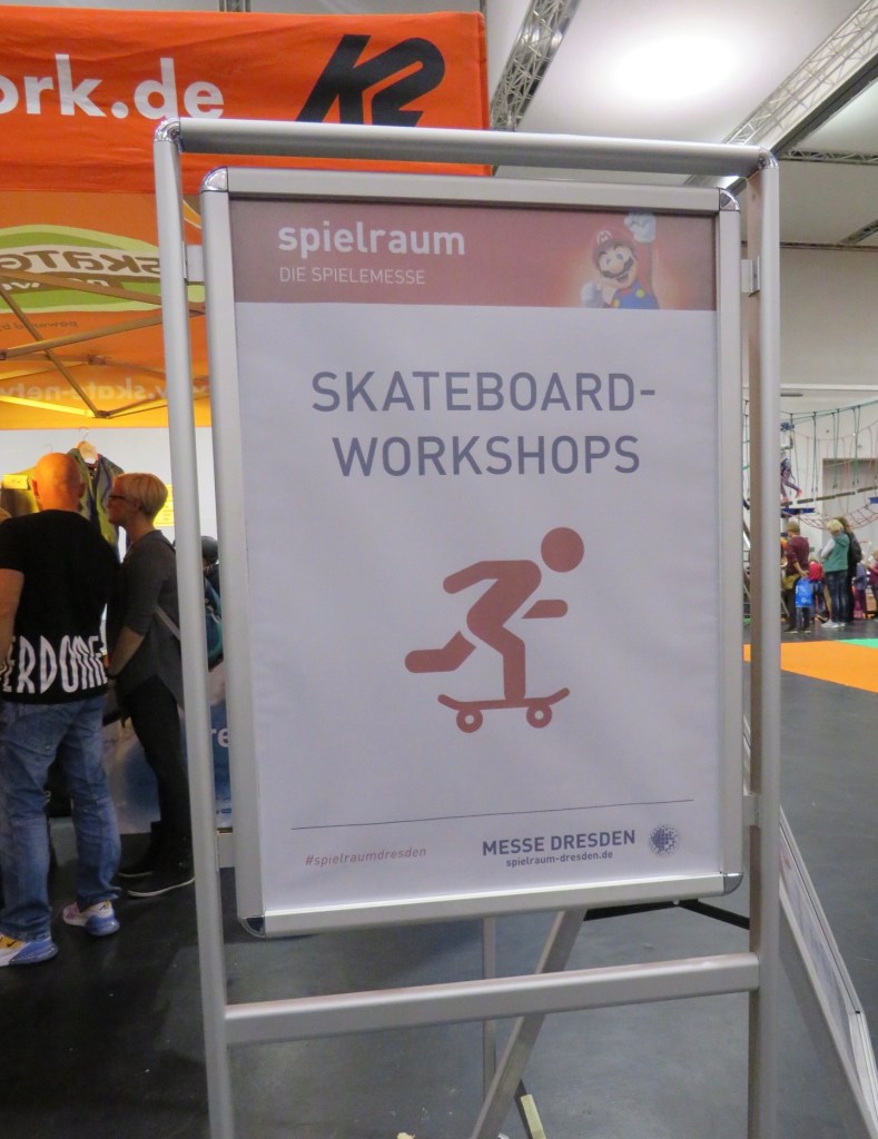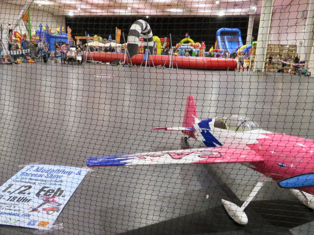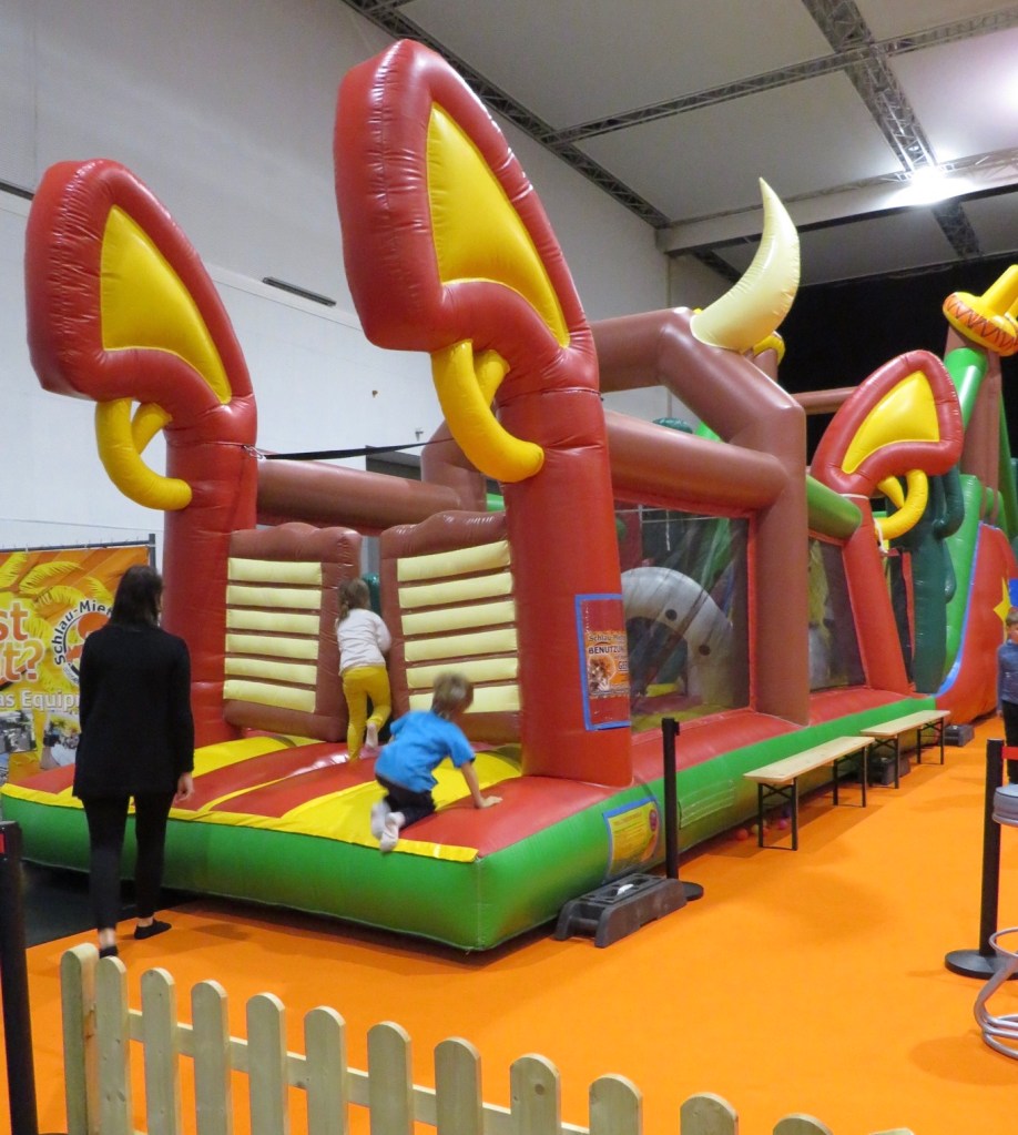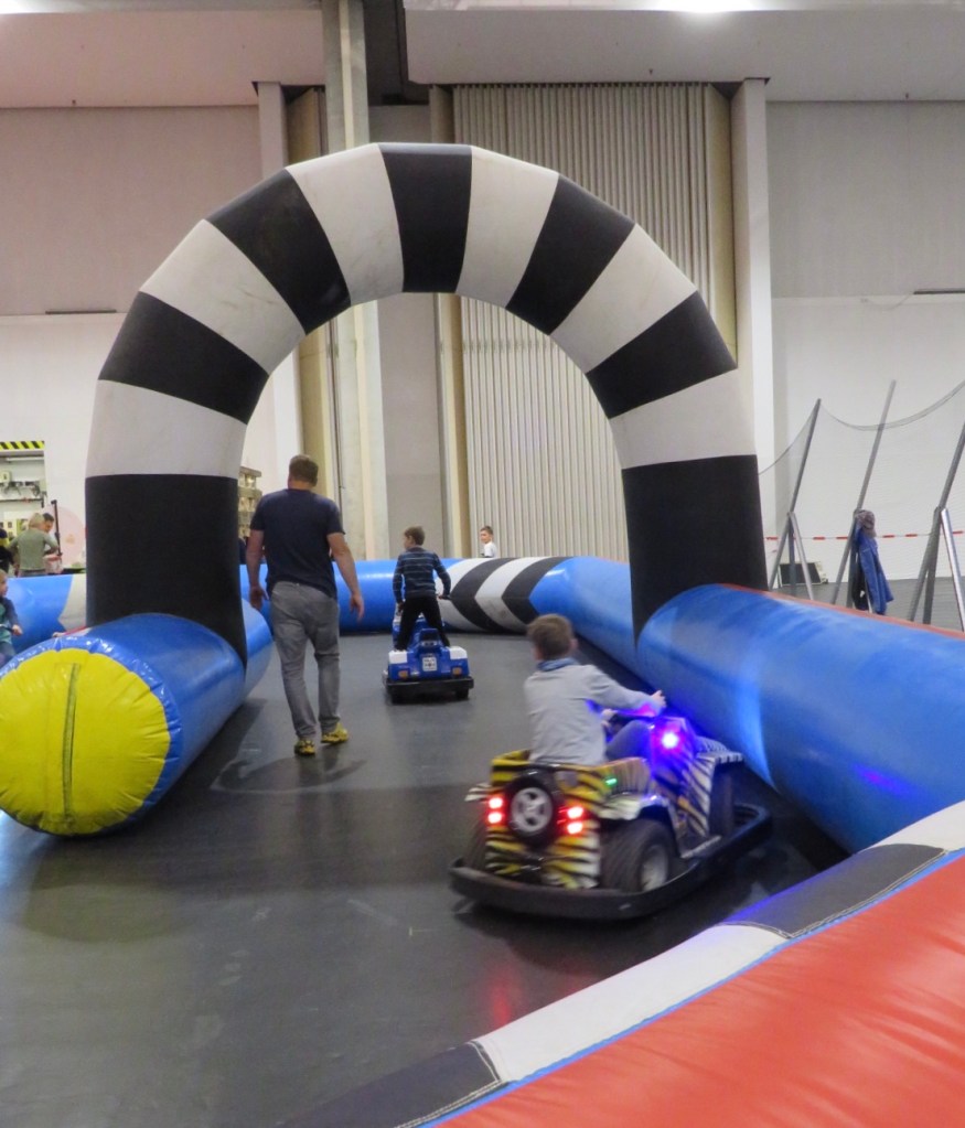 Action- und Tobe-Paradies. В другом зале — Halle 1 — дети могут либо выплеснуть лишнюю энергию в «батутном городке» либо показать свои физические навыки — покататься на самокатах или роликовых коньках по полосе препятствий, или полазить по канатам. Можно попробовать поуправлять дроном или запустить классический бумеранг. Были здесь и любители авиамоделирования.