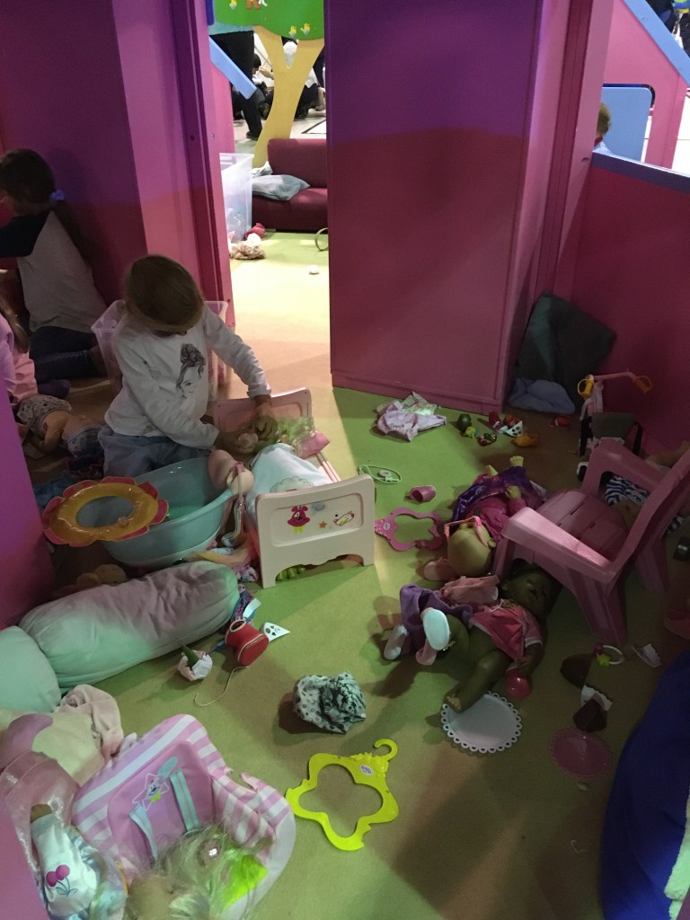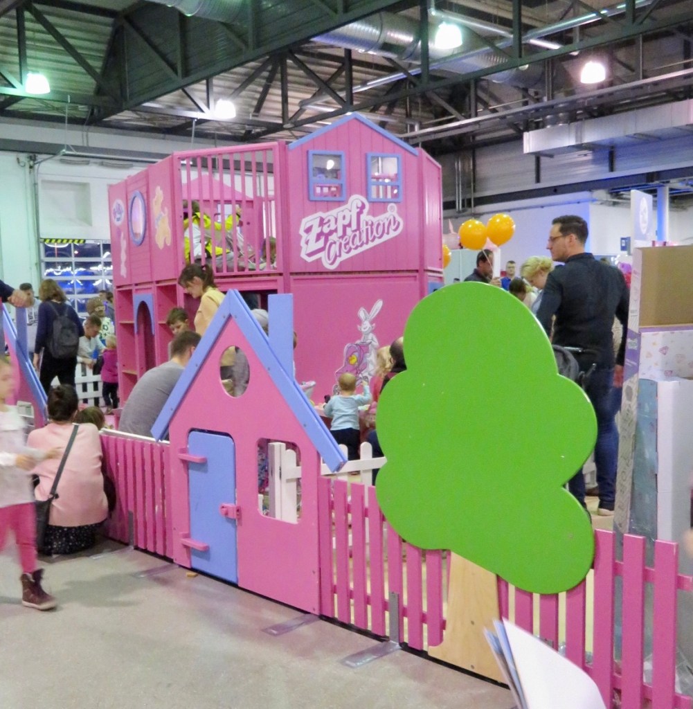 Следующий зал — Halle 4 — больше был похож на огромную детскую комнату с лежащими в ней игрушками и играми. Кто-то строил дома из разбросанных по полу 300 тысяч кубиков ЛЕГО, кто-то заплетал косы куклам в мега-кукольном домике, кто-то строил деревянные пирамиды. Главный посыл Spielraum — “вы определенно найдёте здесь идея для подарков». А это значит, что практически все представленные на выставке игрушки можно было на месте и купить. Многие продавцы предлагали к тому же скидку, т.н. «Messepreis”.