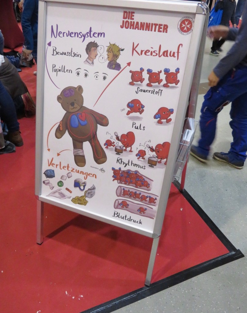 Pfiffikus-Forscher-Arena. В самом начале первого по очереди зала Halle 2 всё посвящено теме экспериментов и науки. Можно посидеть в кабине грузовика, чтобы узнать опасность «мёртвого угла», рядом рассказывают, как возникают пожары, а напротив — можно потренироваться на манекене в умении делать непрямой массаж сердца.