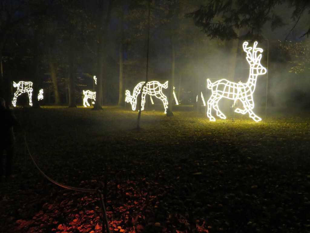 Что вас ожидает? В дневное время парк и замок Пильниц открыт для посещения, как обычно. А вот после 16-30 часов здесь начинается «Рождественский сад» — деревья, здания, даже пруд в парке подсвечиваются тысячами огоньками, звучит праздничная музыка, всё сверкает и блестит. Очень скоро теряется понимание, в каком именно месте парка вы сейчас находитесь, но за маршрутом можно проследить по карте, которую вам выдадут на входе. Её можно также посмотреть ЗДЕСЬ. К слову, можно и вовсе не следовать маршруту, а гулять по парку самим. Но надо иметь ввиду, что на прогулку по маршруту у вас уйдёт минимум 45 минут-час, это без учёта остановок. А остановиться, чтобы сделать красивое фото или рассмотреть светящиеся фигуры, вам точно захочется. И не раз.