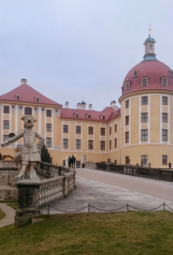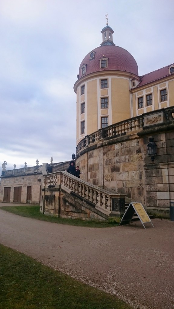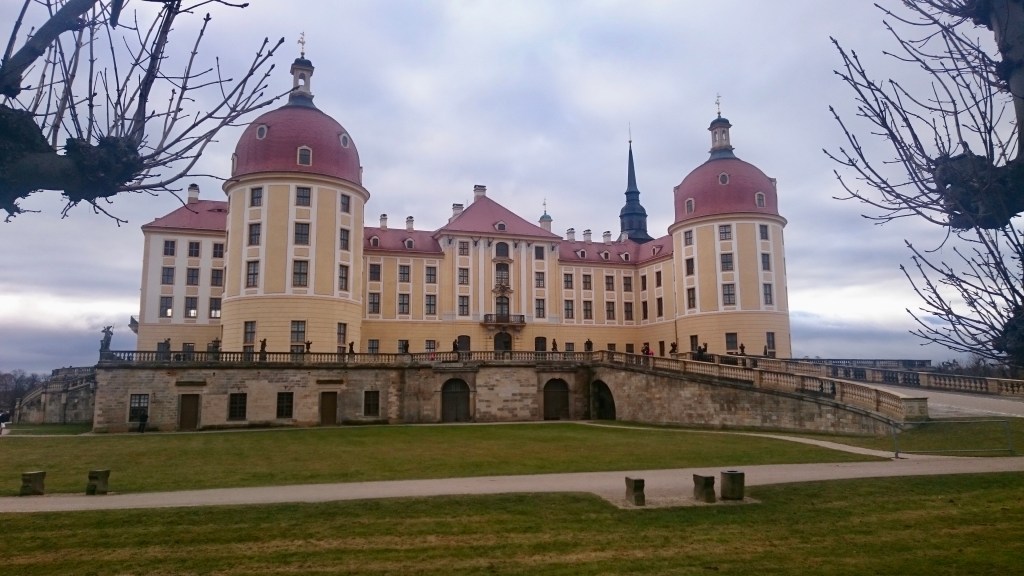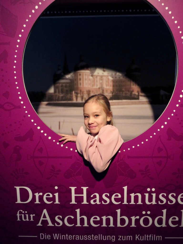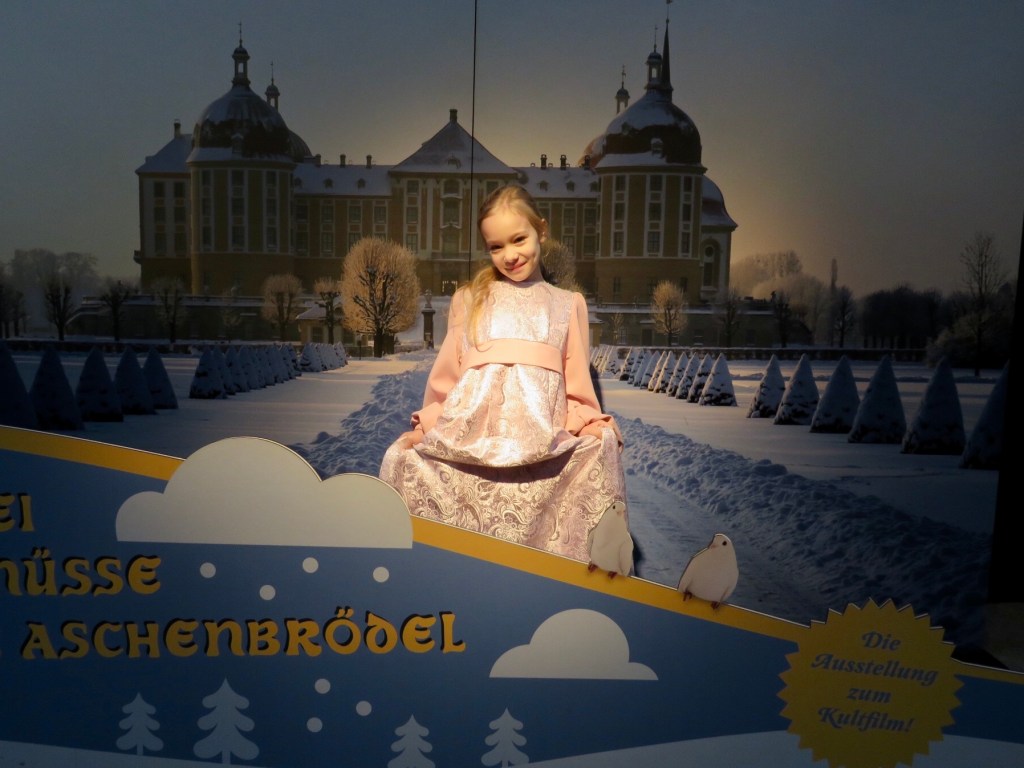 «Три орешка для Золушки» («Drei Hasselnüsse für Aschenbrödel») — фильм совместного производства ГДР и Чехословакии — был снят в далёком 1973 году. Натурные съёмки проходили в Баварии, дом мачехи снимали в Чехии, а вот резиденцию короля — как раз в Морицбурге. Добраться до замка несложно. Дорога на машине от Дрездена займёт около получаса, можно так же очень комфортно доехать на рейсовом автобусе. Замок видно уже издалека: величественный, по-настоящему волшебный, он стоит в окружении лесов у озера, по которому плавают лебеди. К самому замку ведёт длинная мощёная дорога. Помню, у моей мамы захватило дух, когда она увидела вживую пейзажи, которые столько лет наблюдала только с экрана телевизора. Вот лестница, по которой Золушка поднималась на бал к принцу и на которой оставила свою туфельку, а вот дорога, по которой принц и Золушка унеслись вдаль на лошадях в финальной сцене. Внутри замка всё также подготовлено для истинных поклонников фильма.