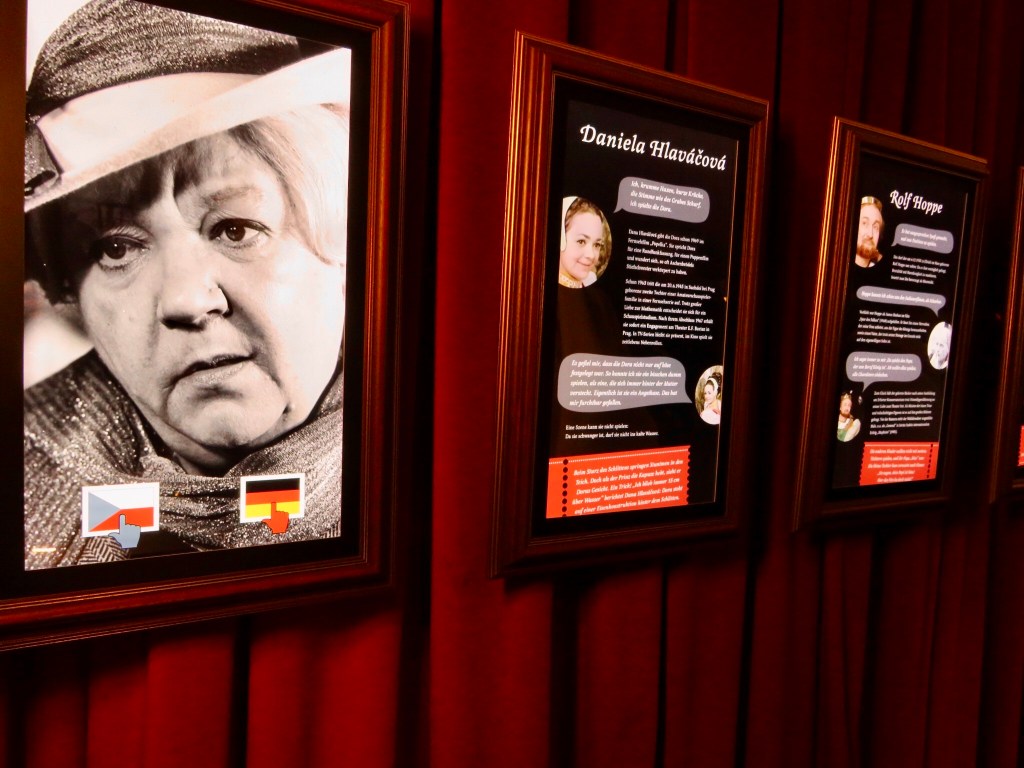 На огромной территории выставки (450 м2) подробно рассказывается о процессе съёмки: можно прослушать записи заглавной песни к фильму в исполнении Карела Готта (который, к сожалению, умер в этом году), в другом зале можно рассмотреть во всех деталях костюмы главных героев и, конечно, туфельку Золушки, ознакомиться с документальными видео и закадровыми интервью.