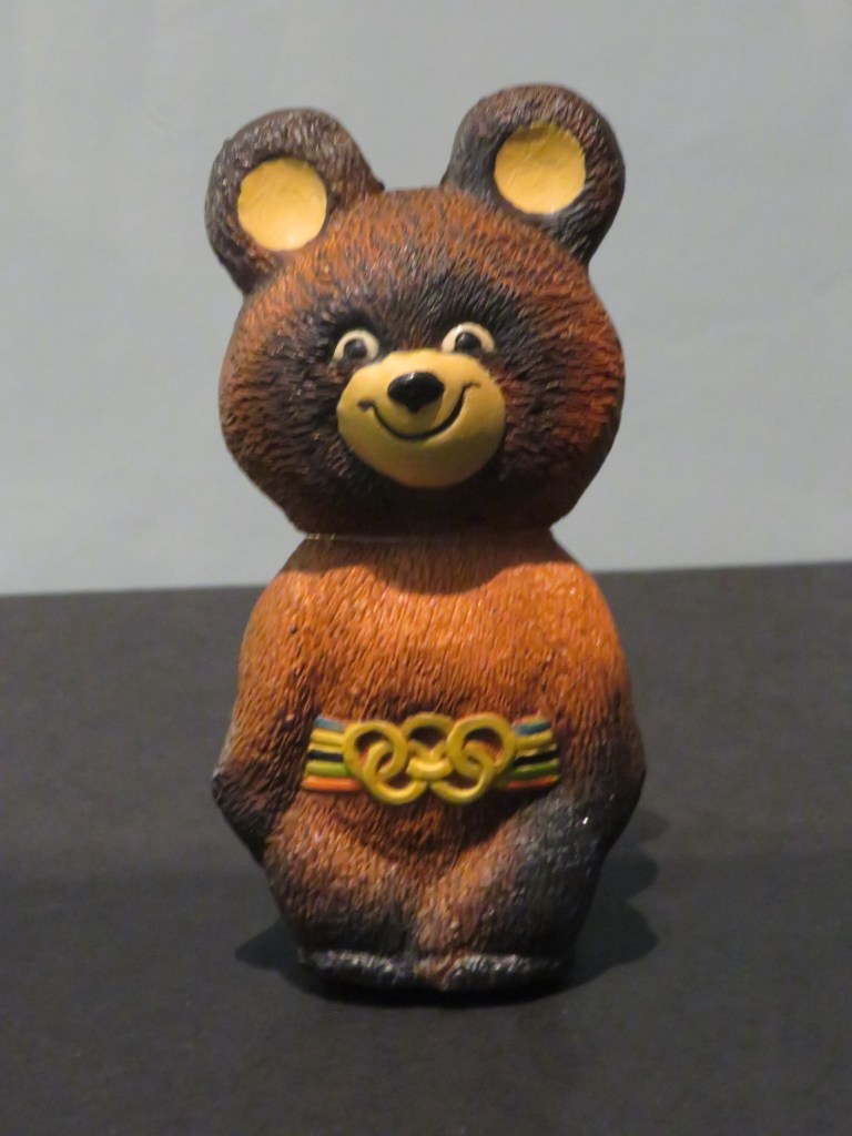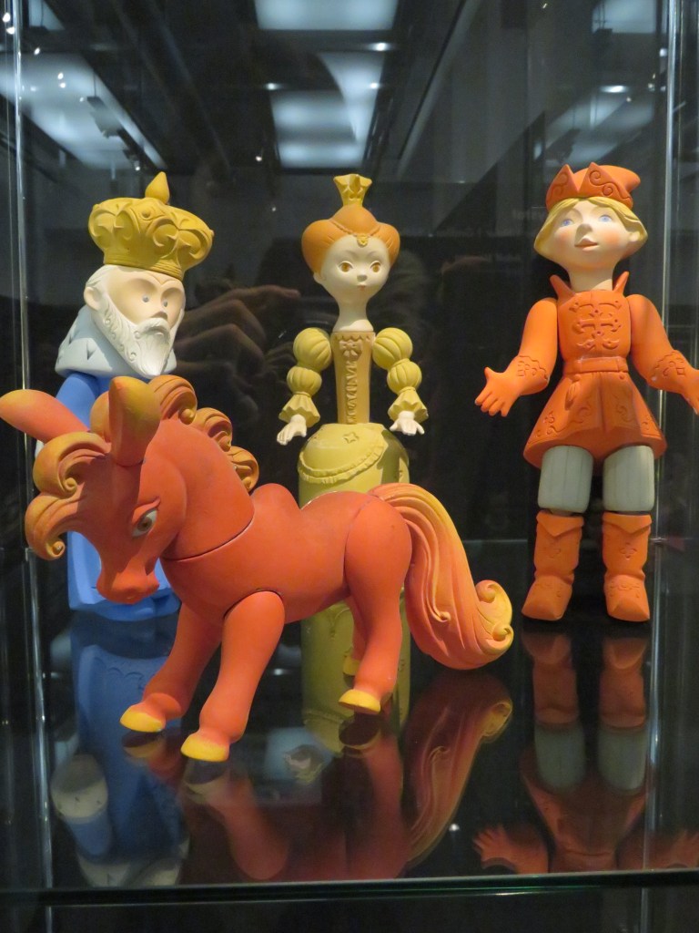 А это — игрушки, созданные по мотивам известных литературных произведений. Был тут и Олимпийский мишка: