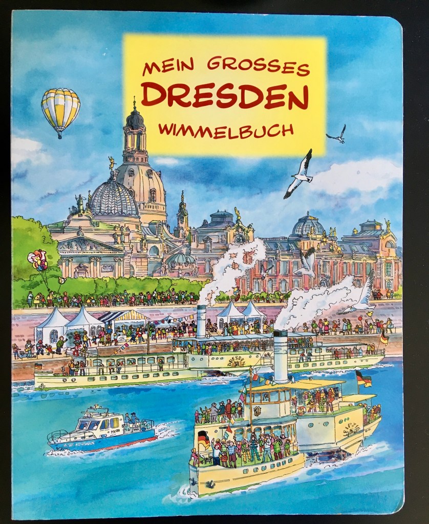 3️⃣ Mein großes Dresden Wimmelbuch — популярная книга теперь и о Дрездене. Есть несколько книг из этой серии, наша — по демократической цене в 5 Евро, большого формата с плотными страницами. Отлично подойдёт детям помладше. Приобрести можно в Thalia.de и других онлайн-магазинах.