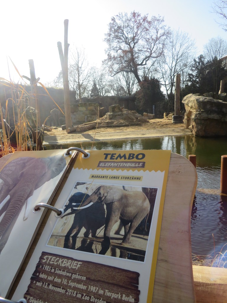 Возле вольера с верблюдами расположен интересный инфостенд, рассказывающий о судьбе зоопарка во время Второй Мировой войны. Увы, накануне бомбардировки Дрездена практически всех зверей пришлось убить, сам зоопарк был полностью разрушен. Восстановление его заняло многие годы. Подробнее об истории зоопарка — ЗДЕСЬ