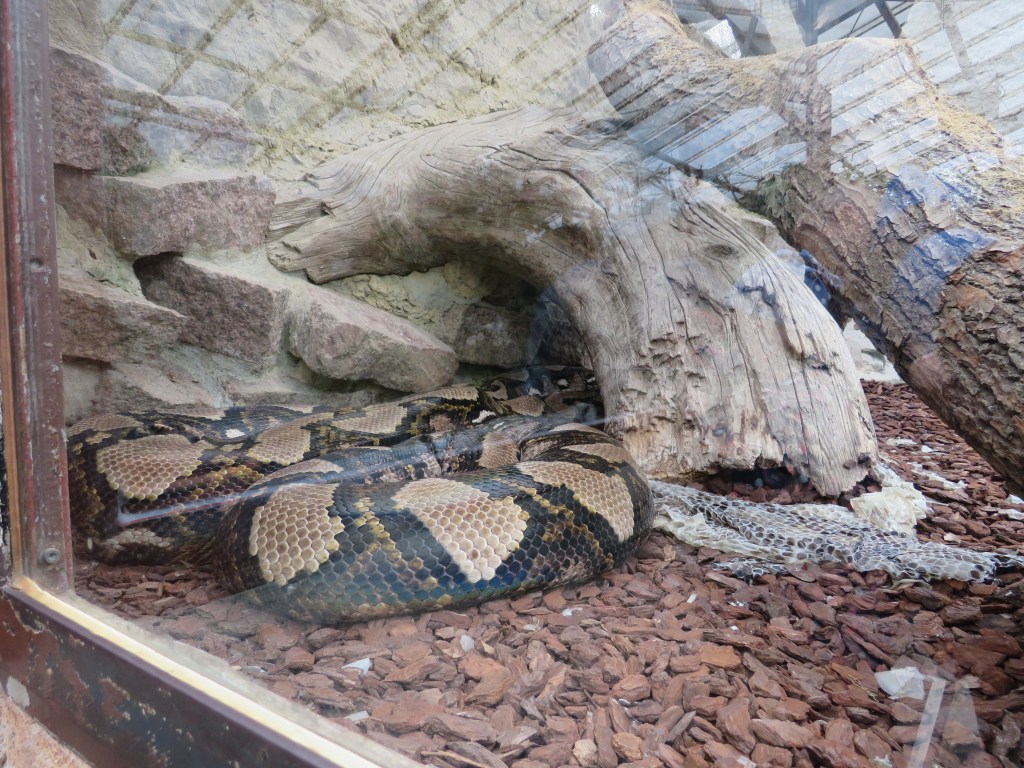 Рядом с павильоном — детская площадка, чтобы дети, словно обезьянки, могли там вдоволь полазить и повисеть (К слову, в зоопарке — сразу несколько отличных детских площадок). А напротив — большой вольер, где живет семейство снежных леопардов. Не каждый раз посчастливится их увидеть — будучи хищниками, они предпочитают сидеть в укрытии. Но если уж они выходят, то можно полюбоваться ими во всей красе: