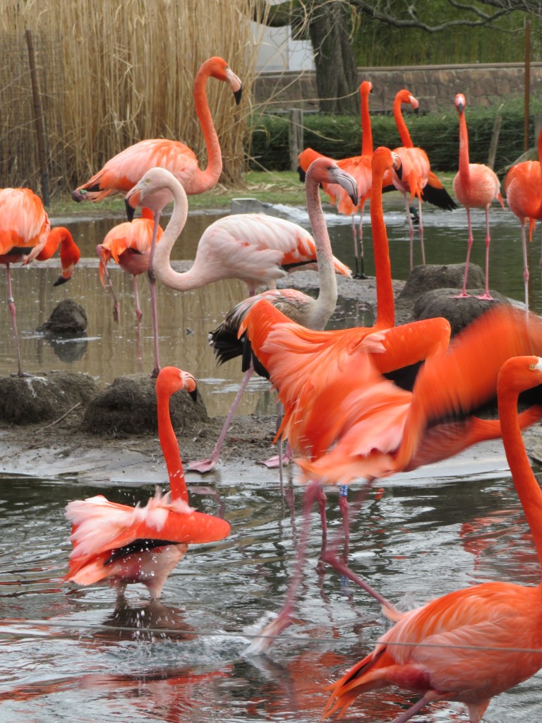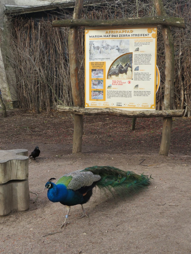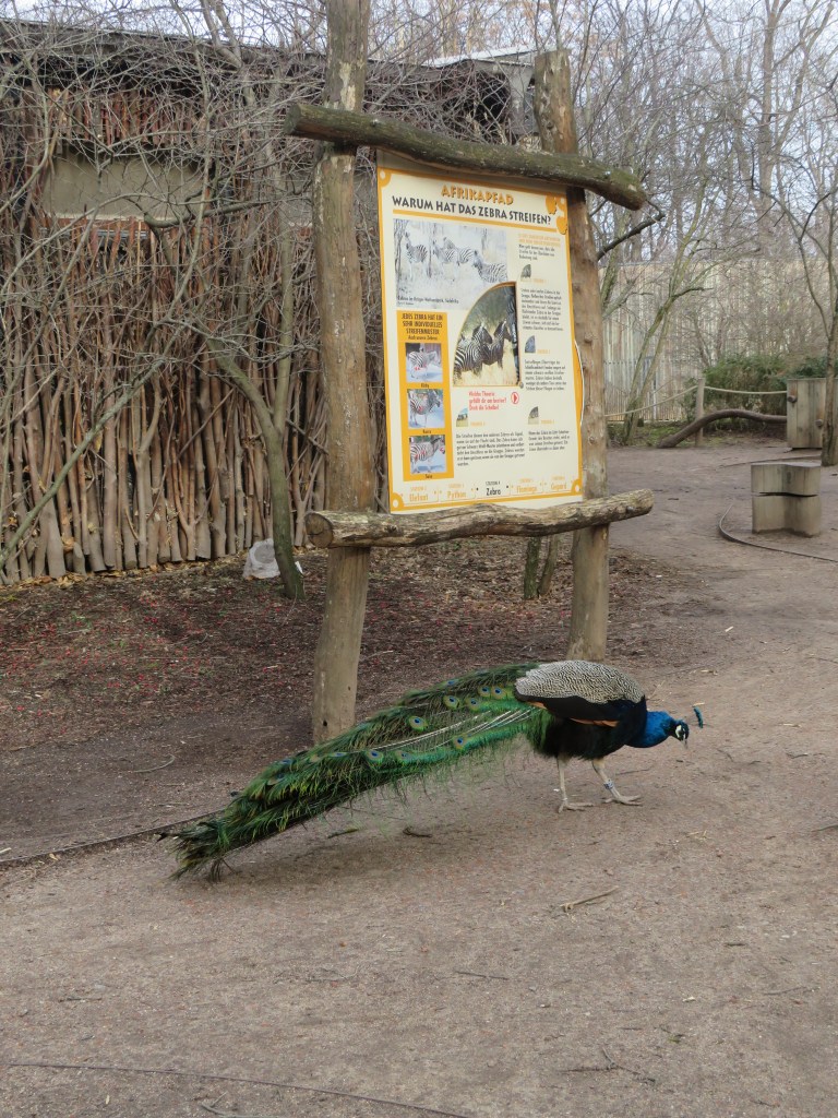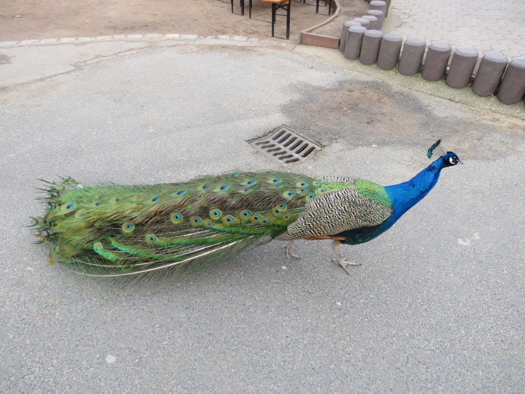 Кстати, не удивляйтесь, если встретите свободно прогуливающихся павлинов. Они себя очень свободно чувствуют и могут гулять везде — и в вольере у фламинго и сидеть на крышах домиков.