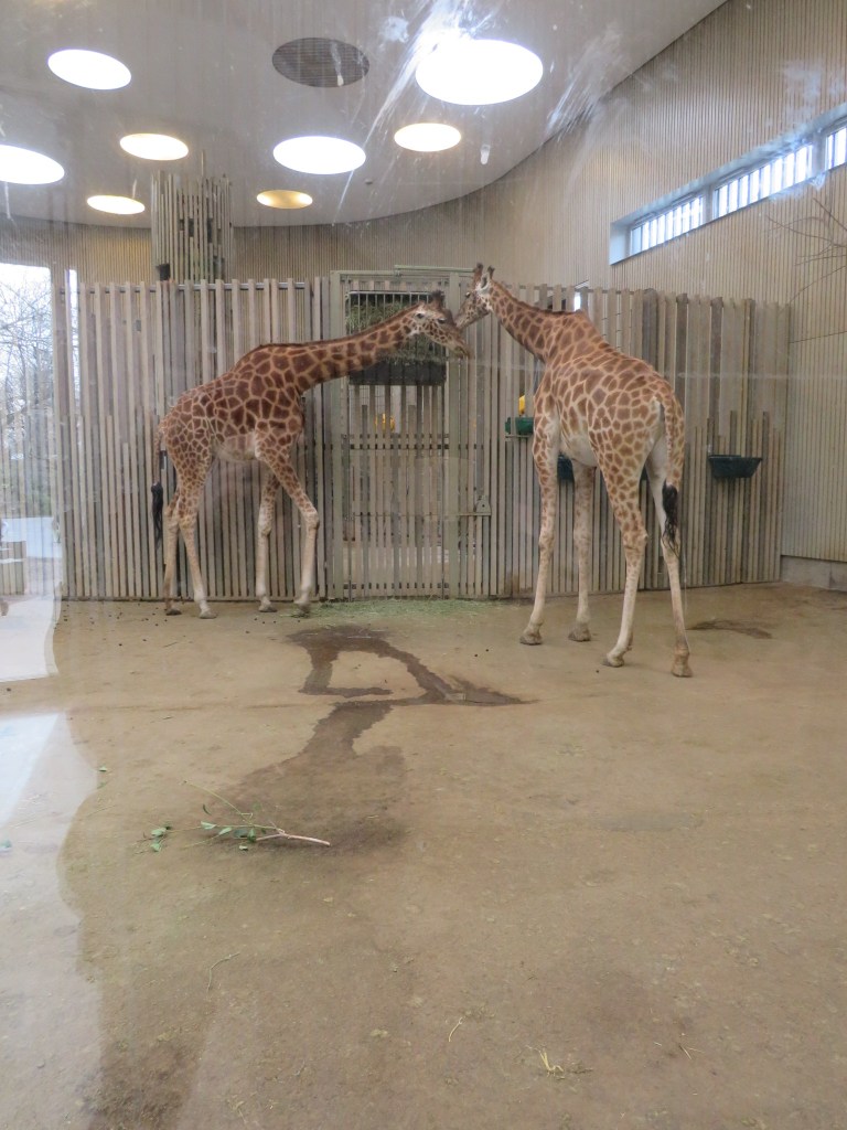 Жирафы и зебры. Чтобы поближе разглядеть жирафов можно забраться на детскую смотровую площадку или зайти в здание, где жирафов кормят и за ними ухаживают.