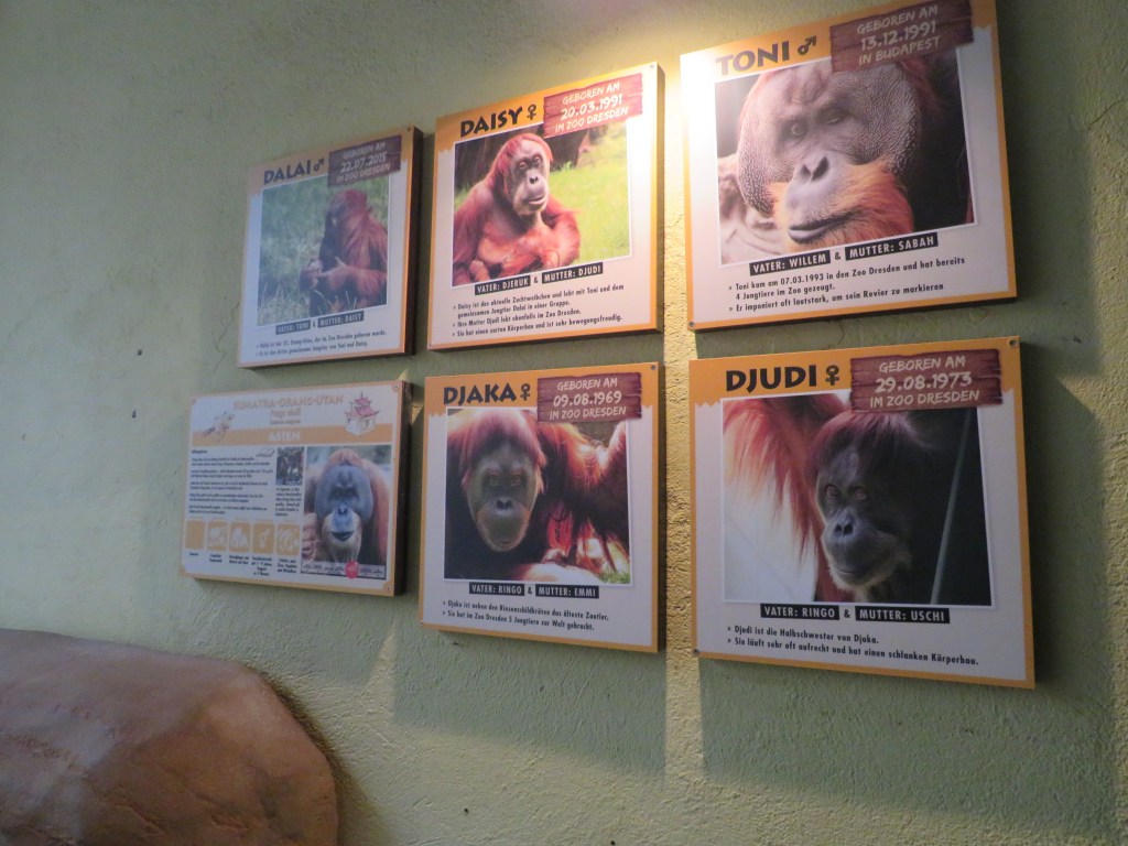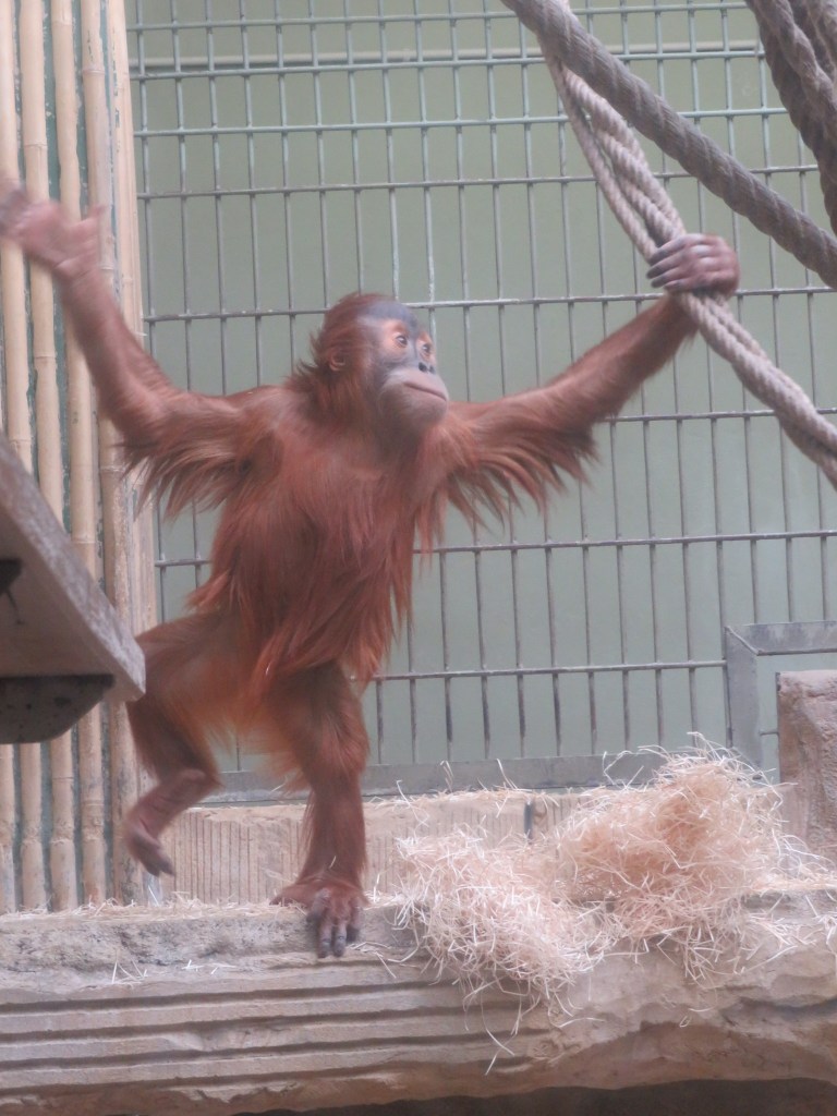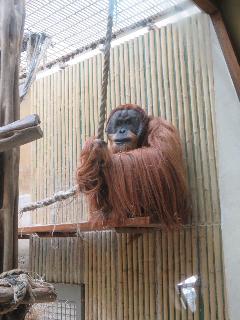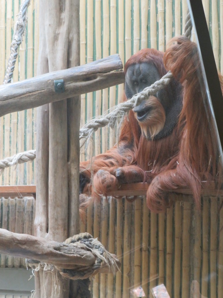 Подходим к Orangutan Haus, здесь живет семья орангутангов. Самой старшей — Дьяке — в прошлом году исполнилось 50 лет, с чем ее и поздравляли всем зоопарком. Орангутанги сидят как внутри, где можно понаблюдать за ними через стекло, либо снаружи — в большой клетке. Особенно веселит всех малыш- орангутанг, балуется и дразнит своих родителей.
