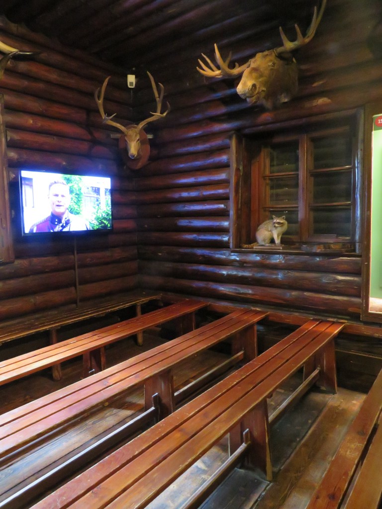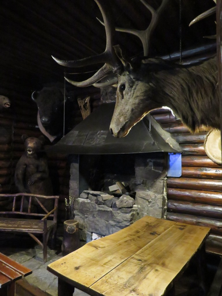 Вас особенно заинтересует рустикальная комната с камином и охотничьими трофеями на стенах. Как будто сидишь в деревянной хижине на диком западе!