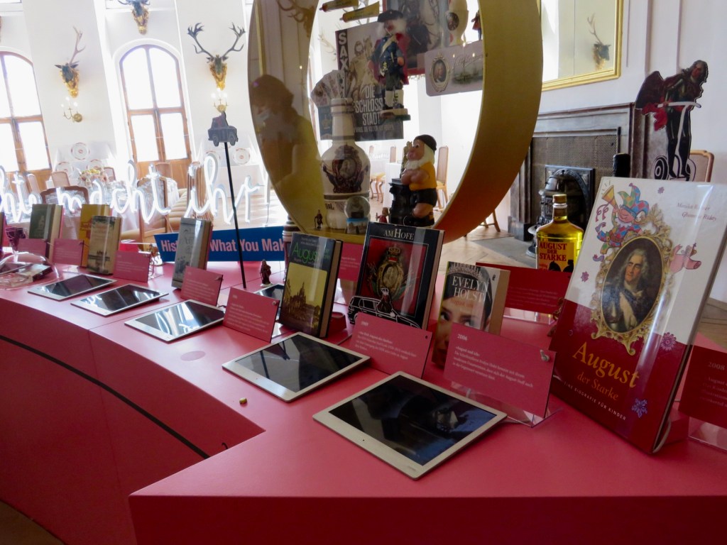 Надо отметить, что выставка про Августа проходит в рамках постоянной выставки в замке Морицбург — «Barocketage». До 1 ноября можно будет рассмотреть во всех подробностях королевские комнаты, предметы интерьера, картины, мебель…