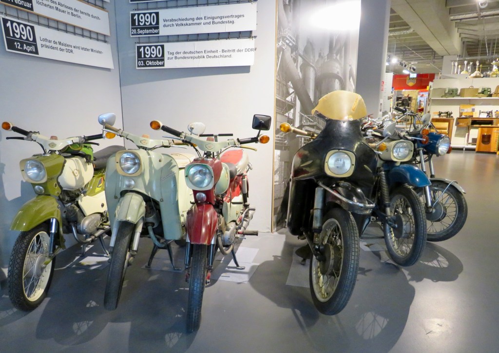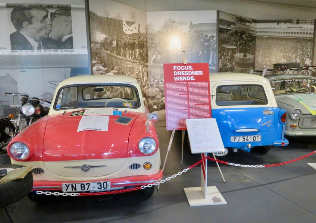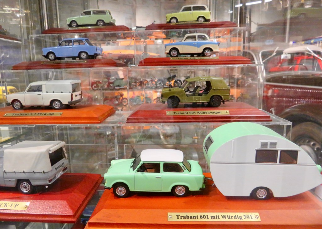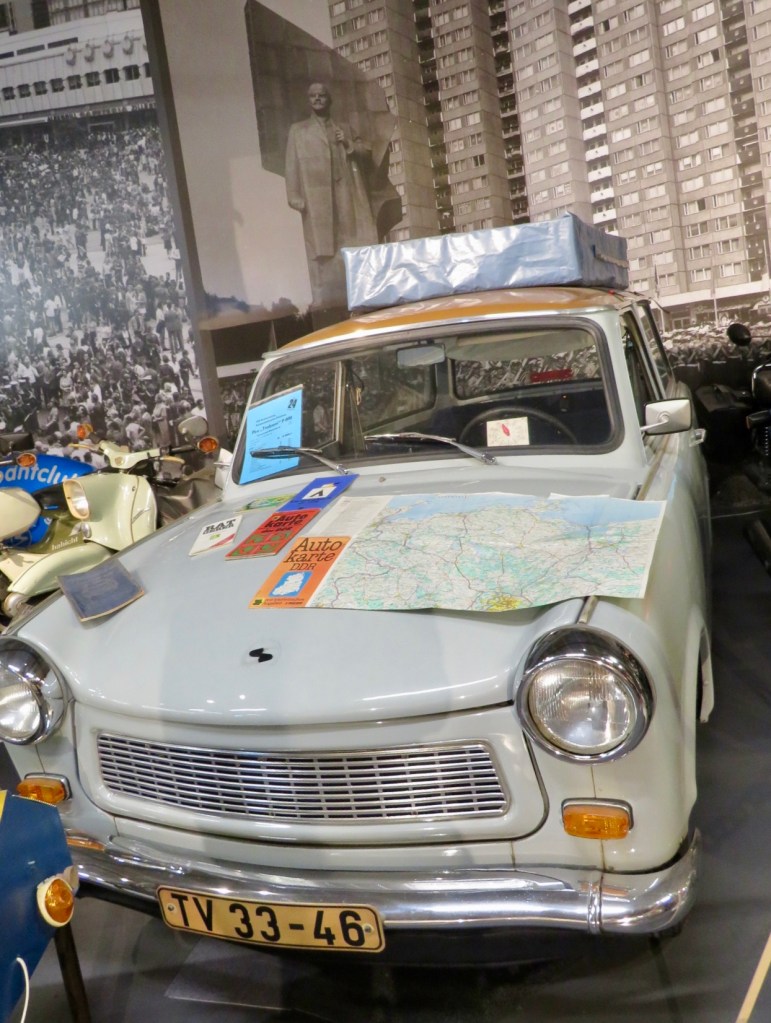 Прежде всего посетителей интересует транспорт в ГДР — на чем ездили люди на востоке Германии? В ГДР выпускалась свои собственные марки автомобилей и мотоциклов — Трабант, Вартбург, Simson… Но так просто автомобиль купить было нельзя, нужно было «стоять» в очереди. Сначала автомобиль выбирался из специального каталога, потом на него делалась заявка и … начинались годы ожидания. В каталоге были не только ГДР-ские машины, но и произведённые в «социалистических» странах — советская «Лада», югославская «Zaszava», чешская «Skoda”, румынская Dachia. Кстати, мои свёкры свой автомобиль (к слову, советскую „Ладу“) так и не дождались. Лишь в 1990 году, спустя 10 лет после „заказа“, им пришла радостная весть „Ваша машина Вас ждёт!“. Но уже вскоре произошло объединение Германии и они купили в итоге «западный» „Volkswagen Golf“.
