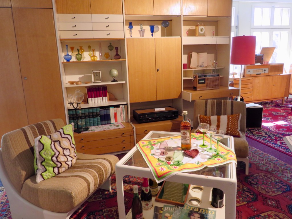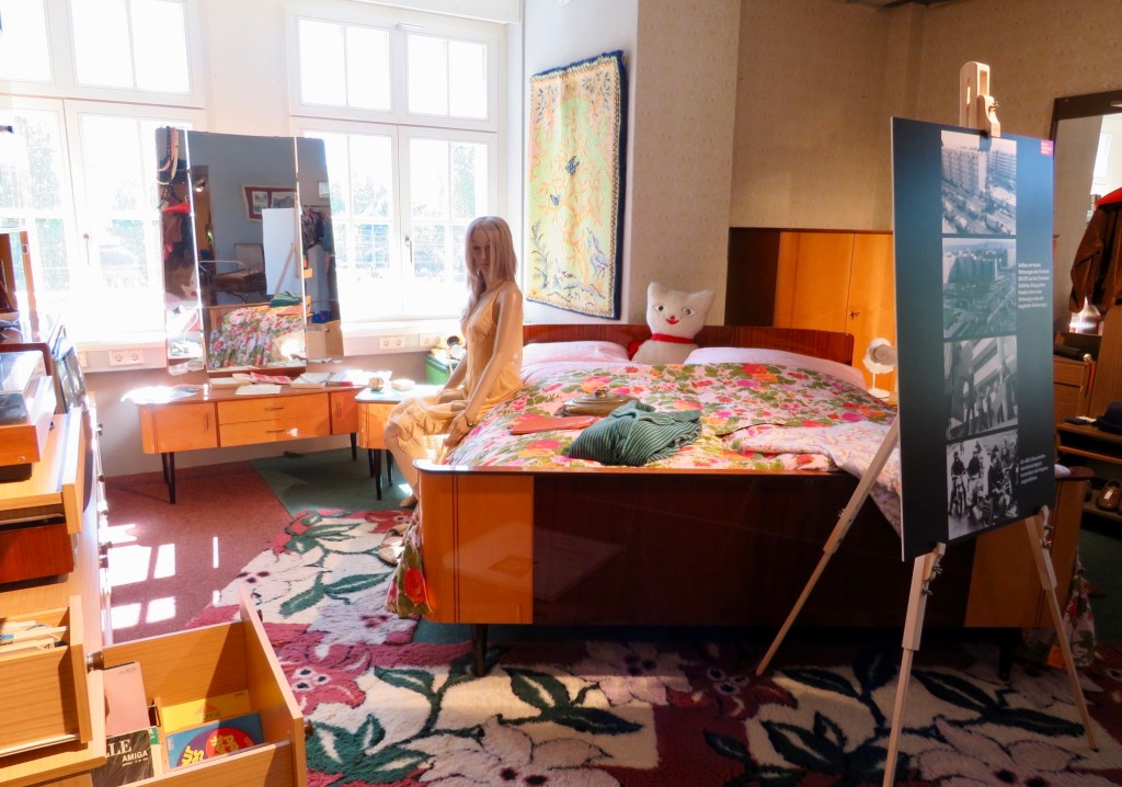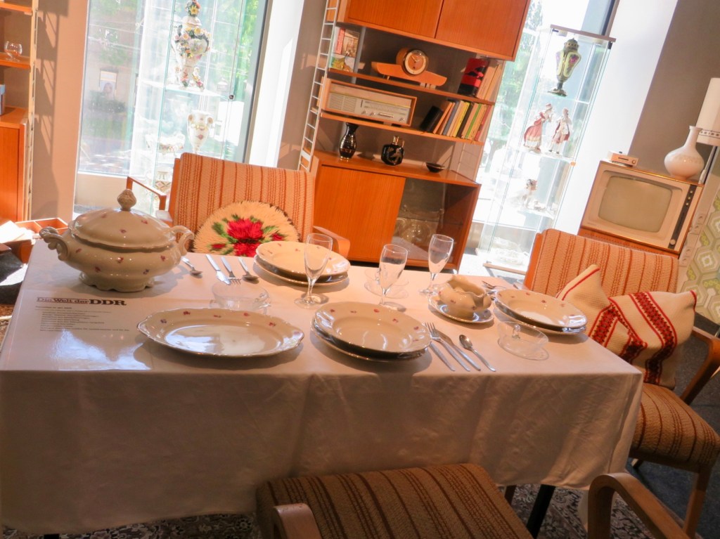 Идём дальше и попадаем в типичную квартиру в Дрездене во времена ГДР. Многие предметы мебели и декора подписаны — какой сервиз на обеденном столе и какой марки телевизор. Возможно, кто-то найдёт здесь знакомые предметы, ведь иногда и у нас были вещи «сделано в ГДР»:
