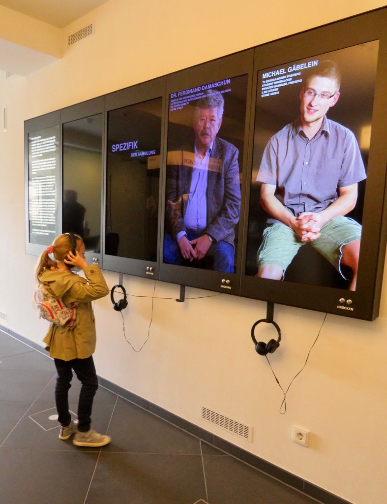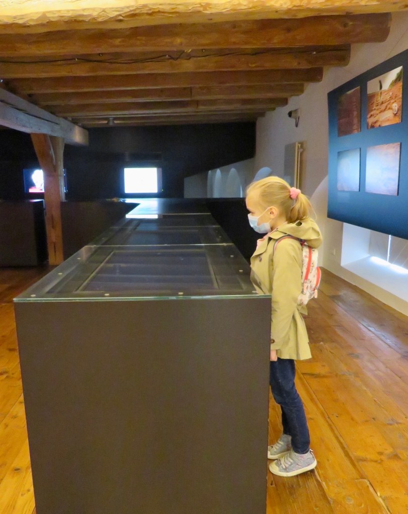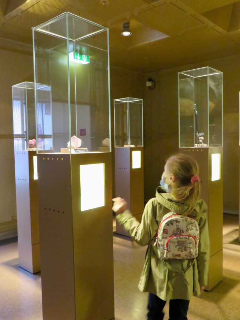 Музей Terra mineralia интересен детям также и своим интерактивом. Здесь можно «оказаться» внутри кристалла, потрогать руками экспонаты, посмотреть на структуру минерала в микроскоп… Есть также игровая комната на самом верхнем этаже. Увы, из-за карантина и мер против Ковид-19 эти “Mitmach”-зоны сейчас не работают.