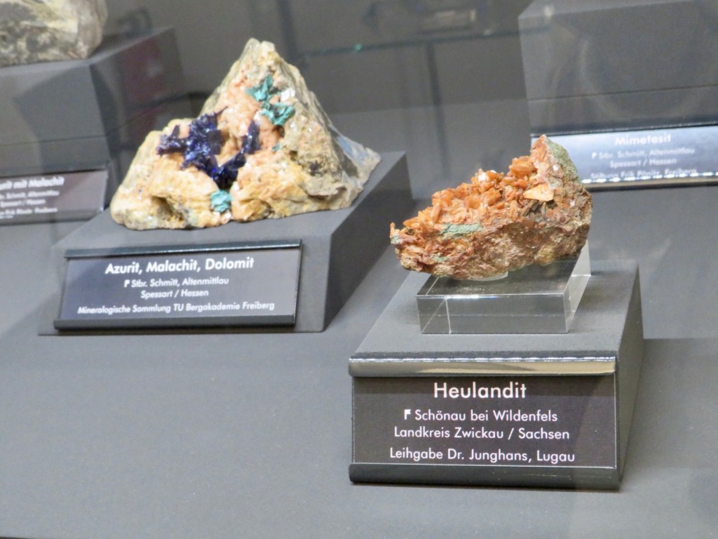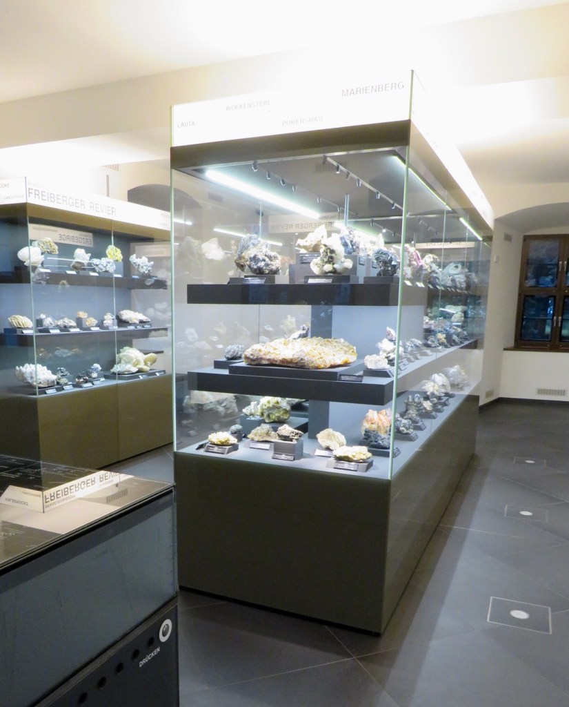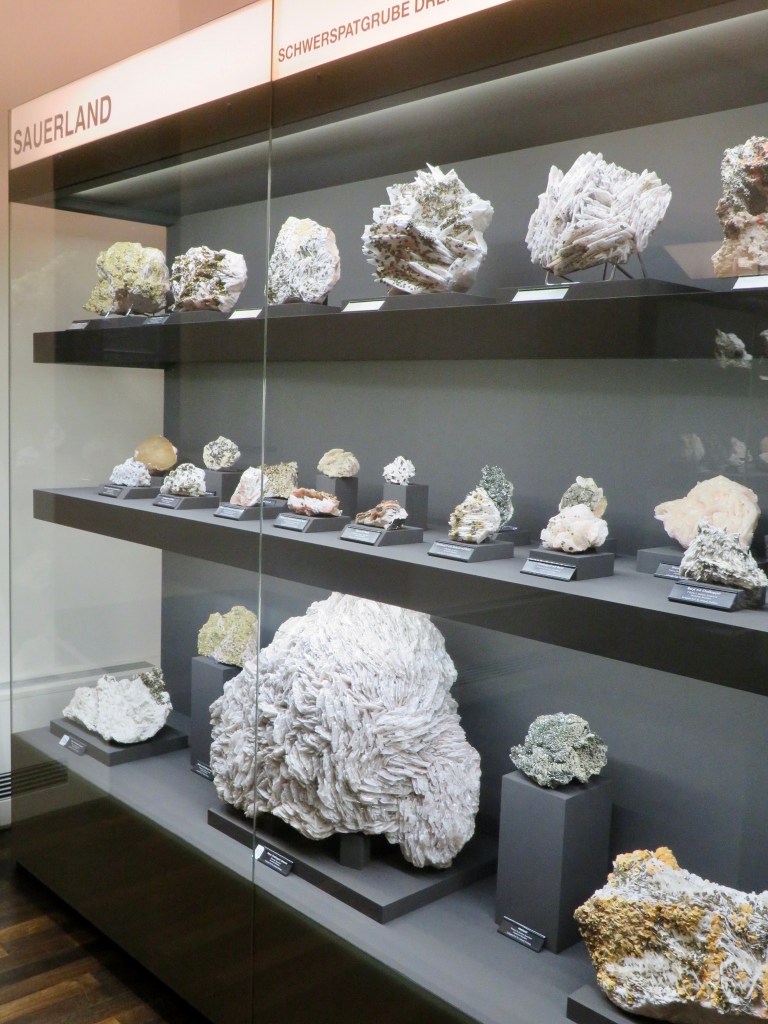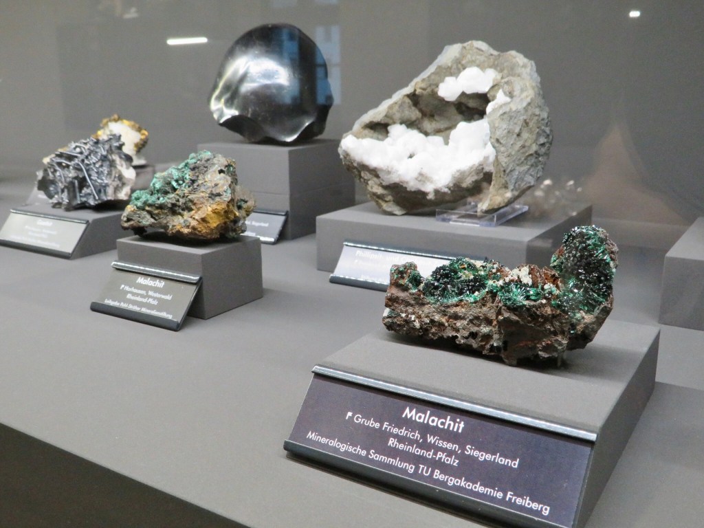 Все экспонаты также поделены территориально: есть и минералы из Фрайберга и района Vogtland, из Sauerland и Schwarzwald, из Oberpfalz и Sachsen-Anhal: