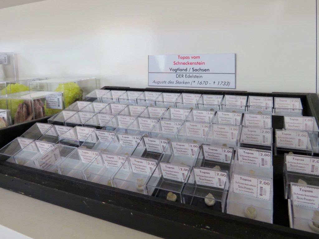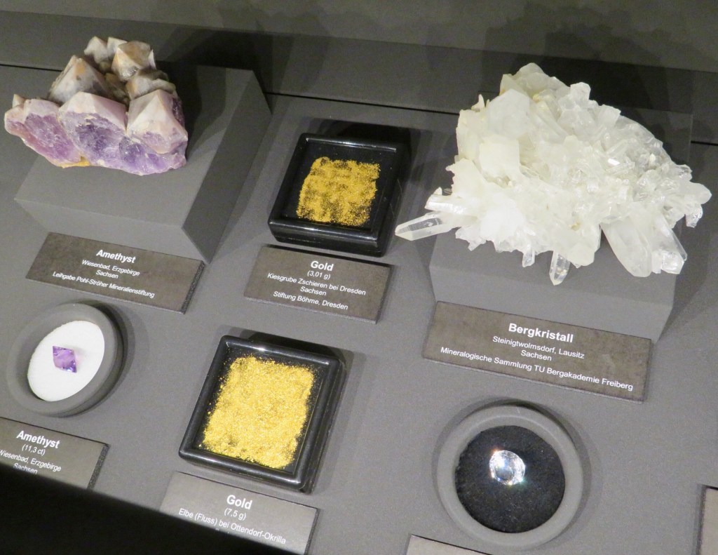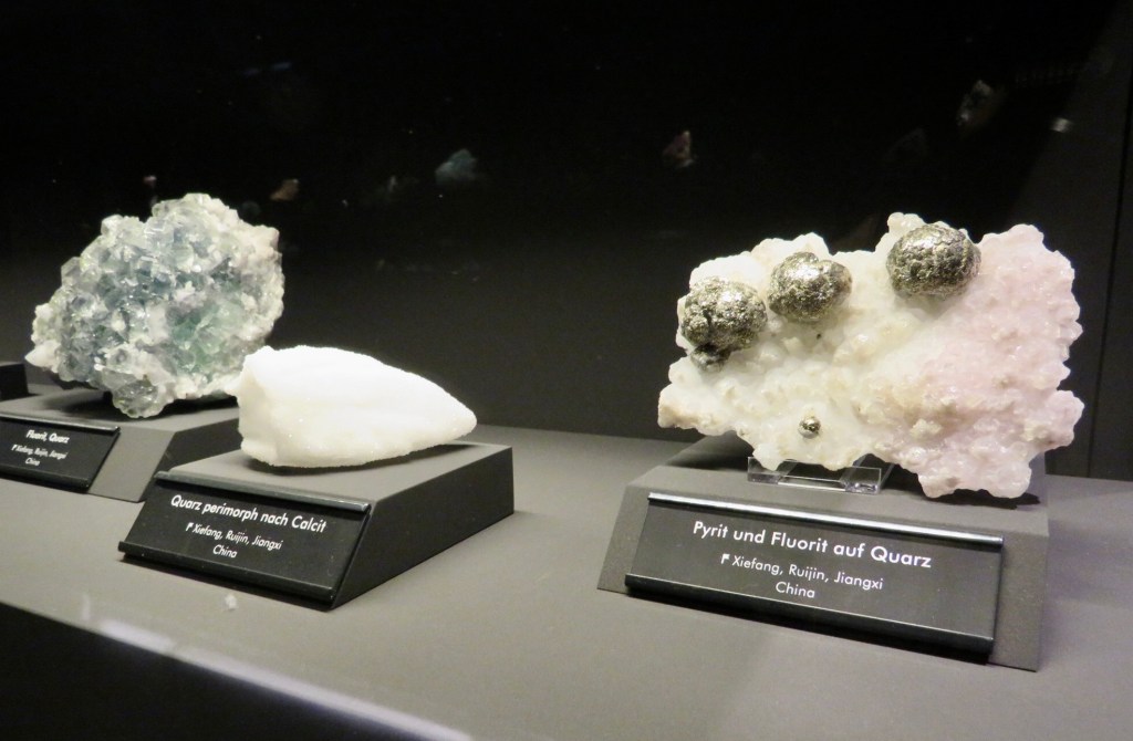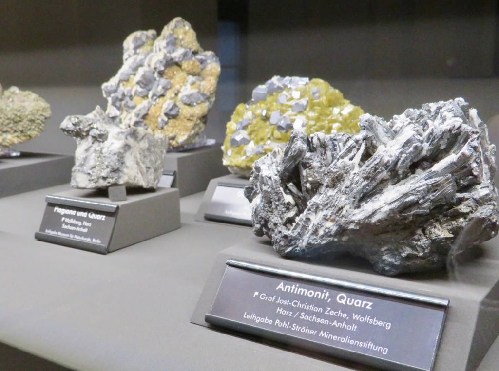 Все экспонаты также поделены территориально: есть и минералы из Фрайберга и района Vogtland, из Sauerland и Schwarzwald, из Oberpfalz и Sachsen-Anhal: