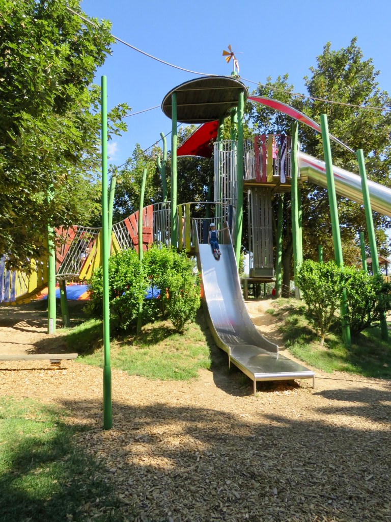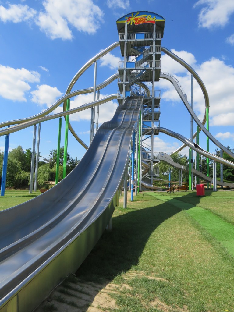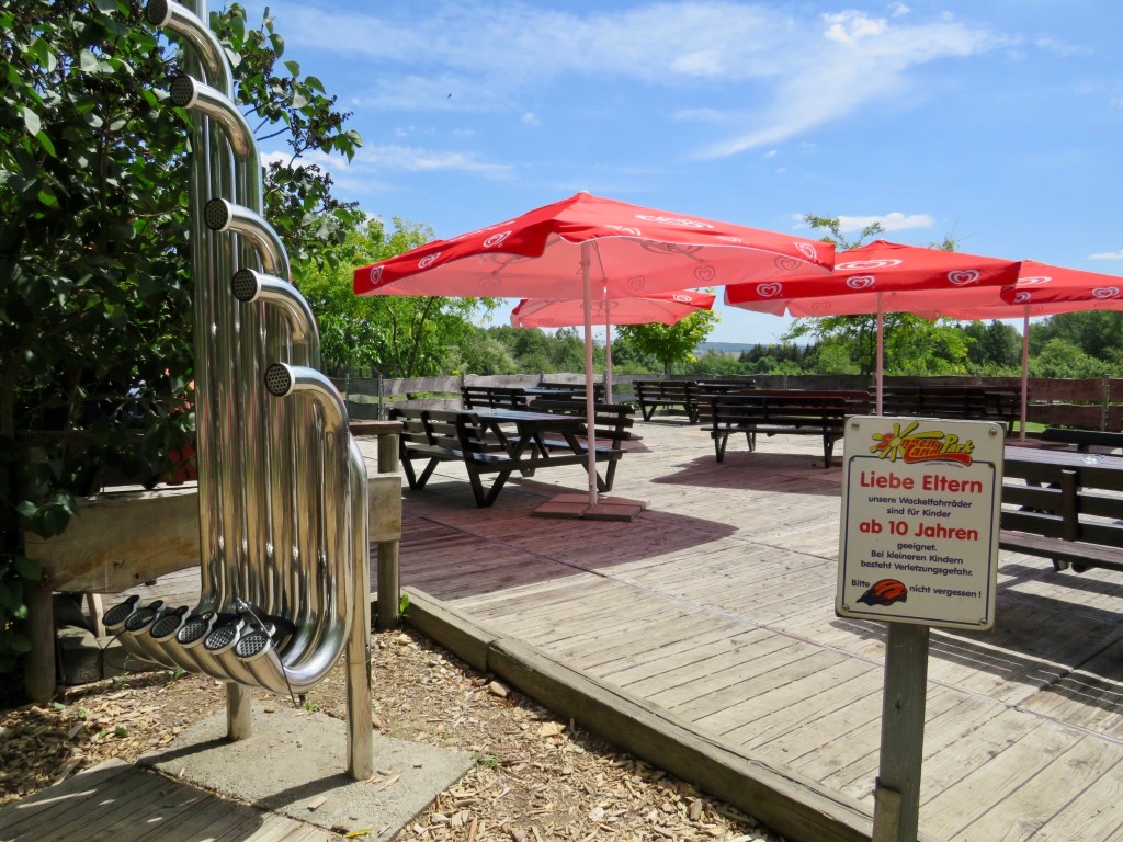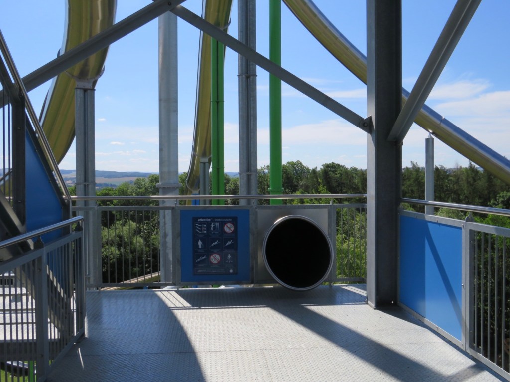 Rutschenturm — самая высокая горка в Германии! Её высота и количество спусков действительно впечатляют: от 5 метров высотой для самых маленьких, до 10, 20 и даже 25-метровых спусков! Кататься здесь нужно на специальных матах, чётко следуя инструкциям к каждому спуску — на какой возраст он рассчитан (некоторые — для детей с 6 лет, некоторые — только в сопровождении взрослого). Моей смелости хватило лишь на один спуск, не самый «простой», но всё же. Представляю, какой уровень адреналина получают те, кто спускается с самой высоты!