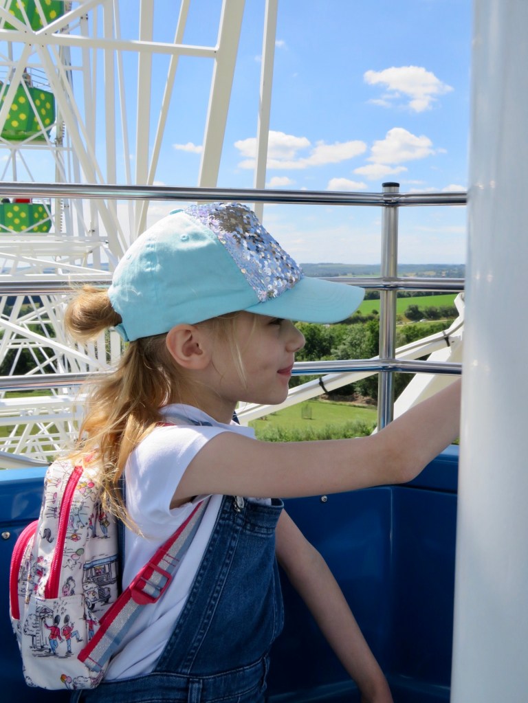 Колесо обозрения Riesenrad. Уже когда едешь по автобану, его видно издалека — настоящий символ парка. Сверху открывается потрясающий вид на парк и близлежащие окрестности. Катание на колесе обозрения, так же как и на многих других аттракционах — бесплатное.
