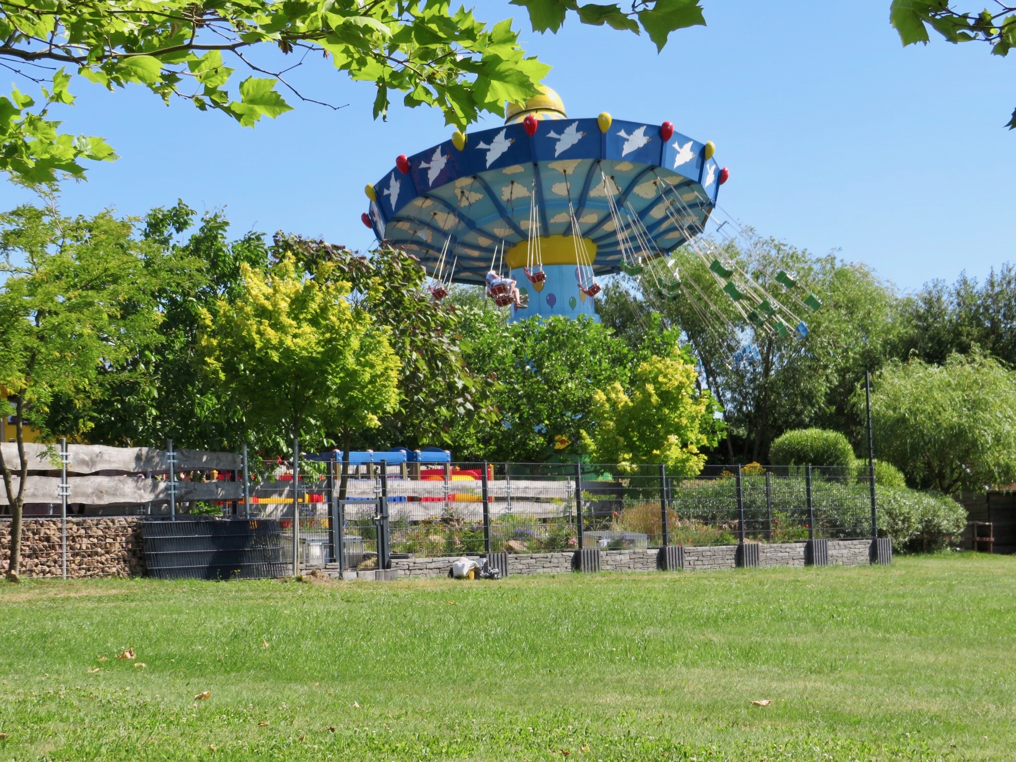 Сразу на входе вас будет ждать детская каруселька Hasenhüpfer. На ней наш малыш, к сожалению, прокатиться не смог, она только для детей старше двух лет, значит нужно немного подождать. Зато он поигрался в зоне для малышей, которая находится рядом: