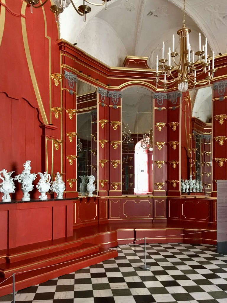 После этого мы отправились в музей «Новые Зелёные своды» (Neues Grünes Gewölbe), где собрано более тысячи настоящих сокровищ. Да, Август любил произвести впечатление! 😉 Здесь тоже мы «искали» зеркала. Но также разглядели некоторые особенно уникальные экспонаты. Как, например, вишнёвая косточка с вырезанными на ней изображениями 185-ти лиц. Или сцена дня рождения индийского правительства, над которым несколько ювелиров трудилось целых шесть лет. И ещё множество других экспонатов из золота, хрусталя, сапфиров, бриллиантов, слоновой кости…