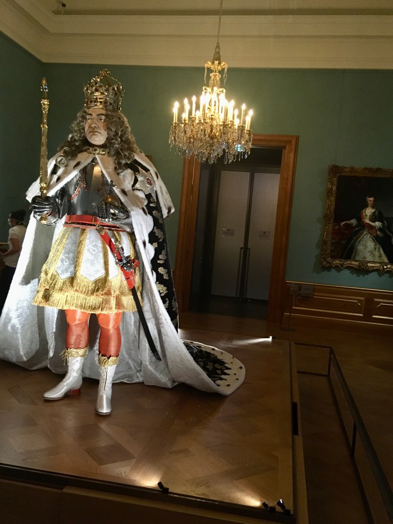 Первый сюрприз ждал нас уже в самом начале. Оказалось, что Маша была единственным ребёнком, кто пришёл! Никто больше в этот день не зарегистрировался. А значит у нас получилась, можно сказать, эксклюзивная экскурсия! Темой были «зеркала». Сначала Маше прочитали сказку о Белоснежке и семи гномах (там, где «Зеркальце, зеркальце на стене…), потом мы все вместе пошли «искать» зеркала в многочисленных залах дворца. Сначала поднялись по английской лестнице, как в своё время знатные гости поднимались, чтобы встретиться с королём. Потом прошлись по недавно открытым парадным залам (Die Königlichen Paraderäume Augusts des Starken), где восторженно осматривали дорогое убранство комнат. Увидели трон, на котором сидел Август Сильный. И всё это было рассказано доступным для ребёнка языком, в игровой форме, живо, с большим интересом и, я бы сказала, дозированно. Оттого Маша много всего не только узнала, но и запомнила — о свадьбе Фридриха Августа с Марией Жозефой, о королевском гардеробе, о придворном этикете…
