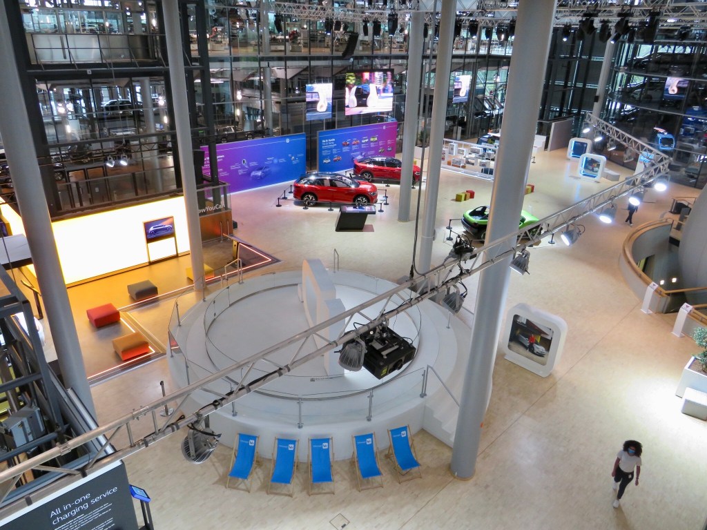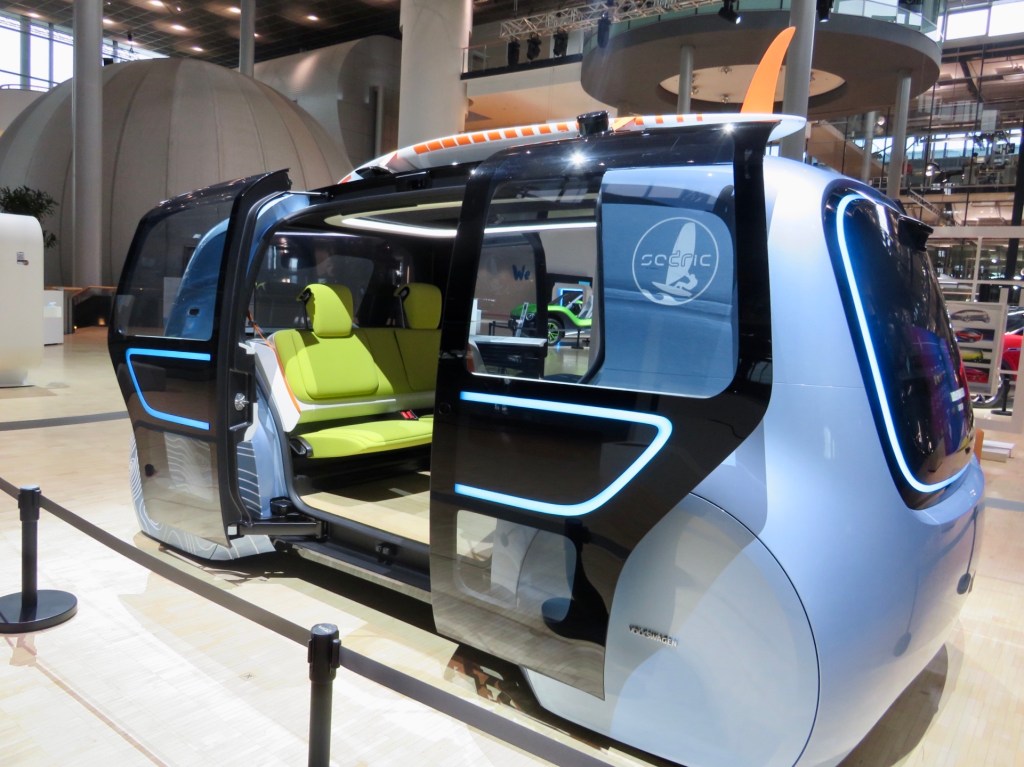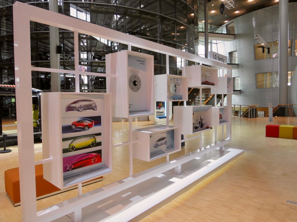 Сначала мы отправились вместе с экскурсоводом в ID. Pavillon. Здесь находятся концепт-автомобили или, иными словами, автомобили будущего. Маше особенно понравилась модель «Седрик» — автомобиль, который больше похож на мини-купе поезда, и в котором нет места для водителя, ведь машина едет сама!