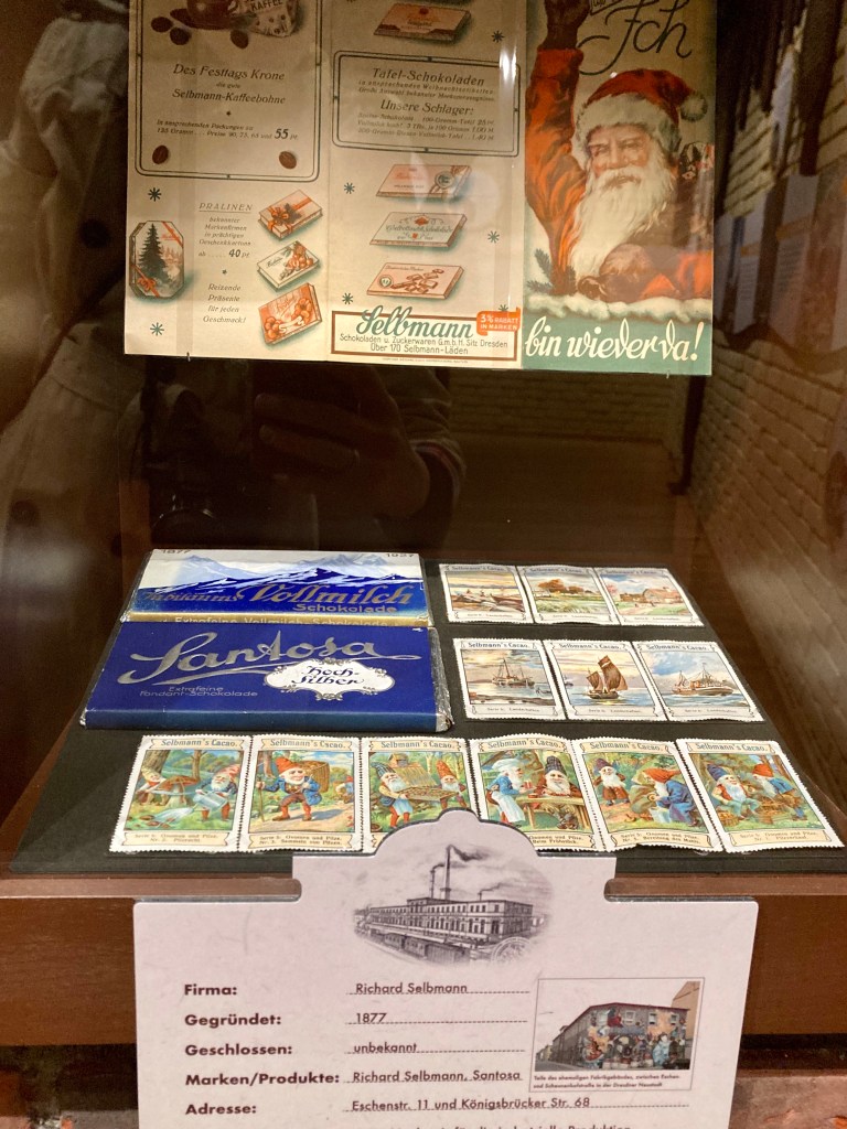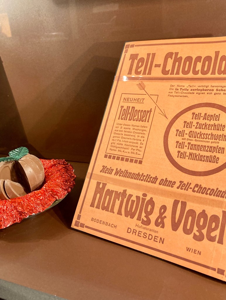 Переходим дальше, непосредственно к истории производства шоколада в Дрездене. Здесь можно увидеть уникальные экспонаты — первый «шоколадный» адвент-календарь, а также другие дрезденские «шоколадные изобретения» — Молочный шоколад, так называемый «Русский хлеб» и рождественская сладость «Dominosteine». Знаменитая картина «Шоколадница» неизменно во всем мире ассоциируется с Дрезденом. В музее ей также уделено пристальное внимание: