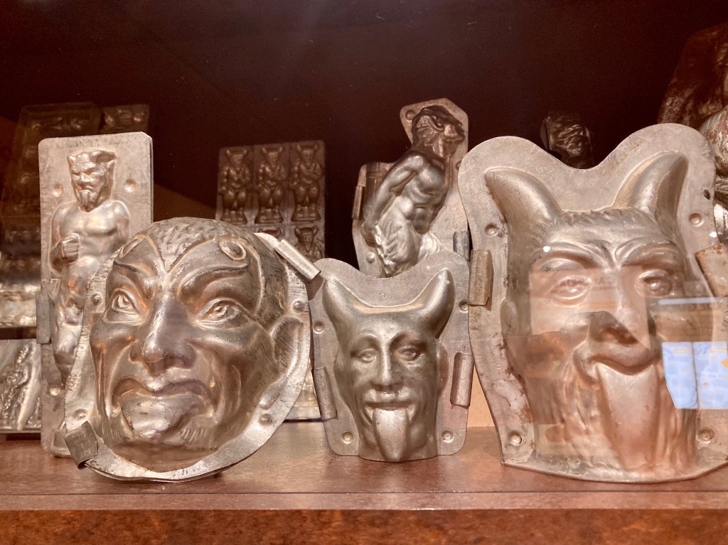 Но начинается экспозиция с самых истоков — в музее собрано большое количество железных форм для производства шоколада Антона Райха. Раньше же не было ярких фантиков и обёрток, поэтому поразить воображение нужно было искусной формой или рисунком на шоколаде. К слову, эти формы функционируют и до сих пор, только вот по современных правилам их нельзя использовать.