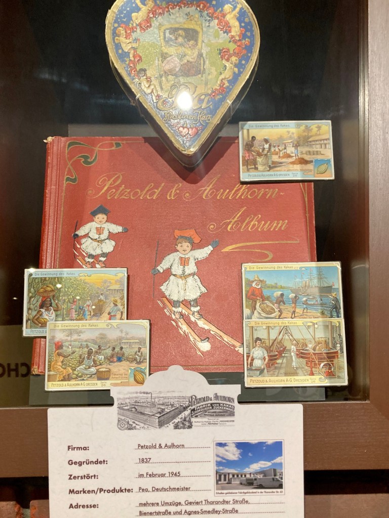 Первая шоколадная фабрика была открыта в 1823 году. Я была поражена, узнав, что уже в начале 20 века в Дрездене работало почти 30 шоколадных и сахарных фабрик. В этой индустрии было задействовано более 4000 человек. Увы, но большинства из них уже нет, остались лишь уникальные экспонаты — рекламные буклеты и яркие коробочки и упаковки от шоколада.