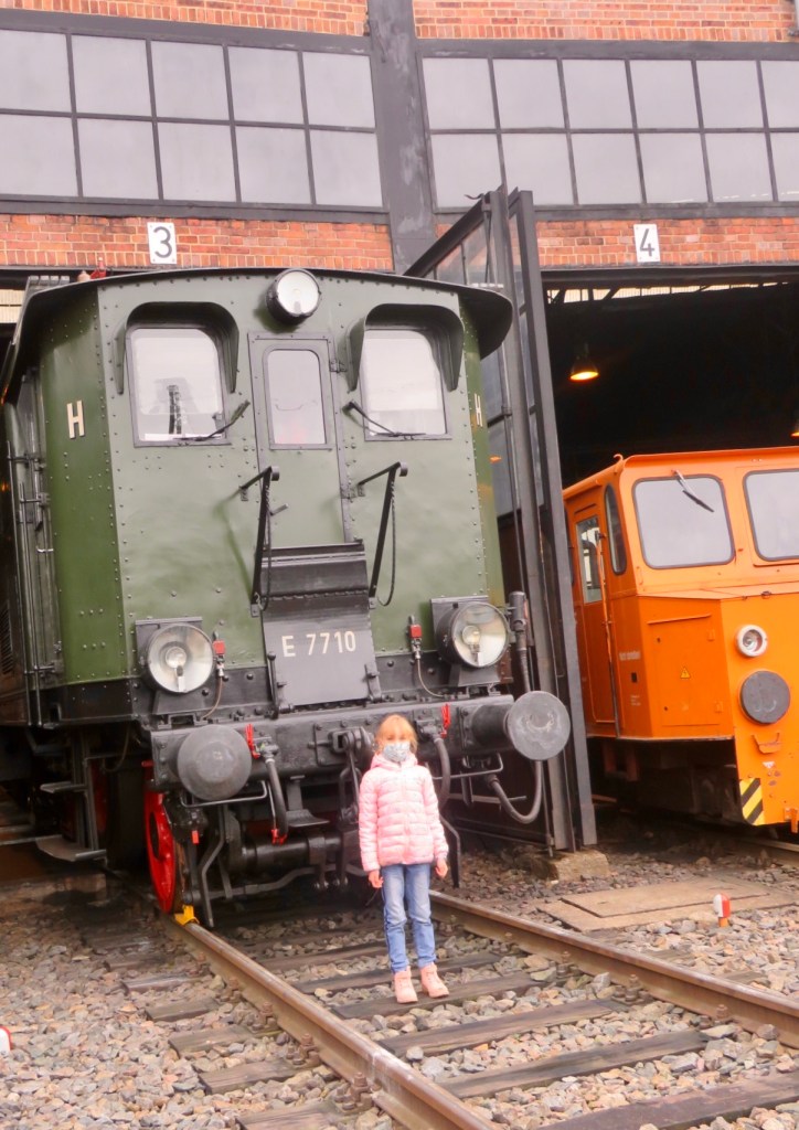 Главное событие — это «смотр» локомотивов на специальной крутящейся платформе. Как обычно, помимо простых любителей «паровозиков» (как, например, мы), среди посетителей были настоящие профи и фанаты железной дороги. Они знали наизусть чуть ли все технические характеристики того или иного локомотива. Именно для них сотрудник музея по громкой связи рассказывал во всех деталях про каждый экспонат. В этот день было на что посмотреть! Помимо локомотивов, которые базируются в дрезденском музее, в этот день были и «гости» — локомотивы из других регионов. Особенно наше внимание привлёк современный локомотив с гибридным двигателем (едет и на дизеле и на электричестве). У нас была возможность зайти внутрь, посидеть в кресле машиниста и послушать его рассказ о работе. Оказалось, что стать машинистом поезда было его мечта с детства, которую он и воплотил, проучившись три года после школы.