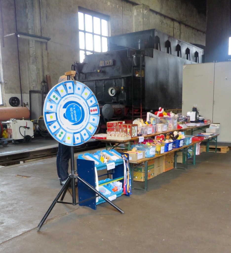 Что ещё было интересного на празднике? Небольшая томбола с подарками для детей, мини-блошиный рынок с товарами на соответствующую тему, а также в здании — выставка миниатюрной железной дороги.