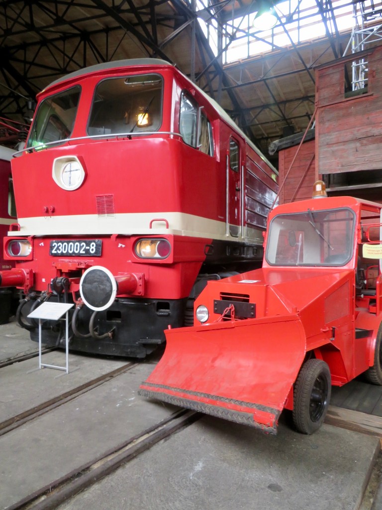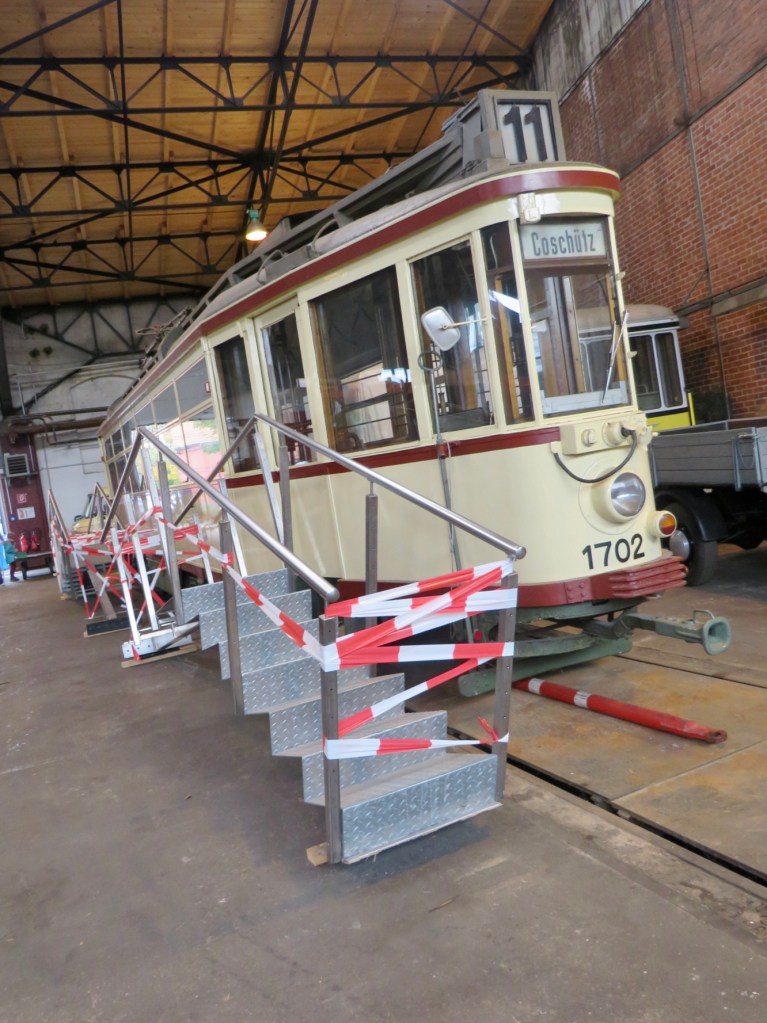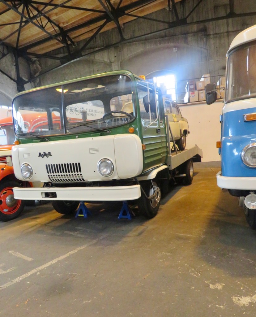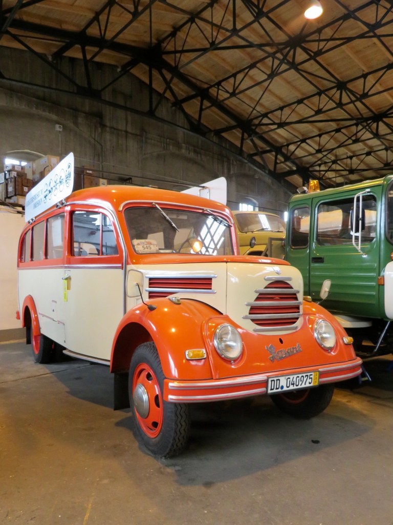 Но и это ещё не всё. Пройдя дальше по Цвикауерштрассе, мы оказались в доме номер 4, в котором сейчас размещается депо дрезденского Музея Транспорта. Это место бывает открыто и того реже — всего два раза в год. Так что нам снова повезло. Здесь можно увидеть уникальную технику времён ГДР, ретро-автобусы, автомобили, ну и, конечно же, снова поезда и локомотивы.