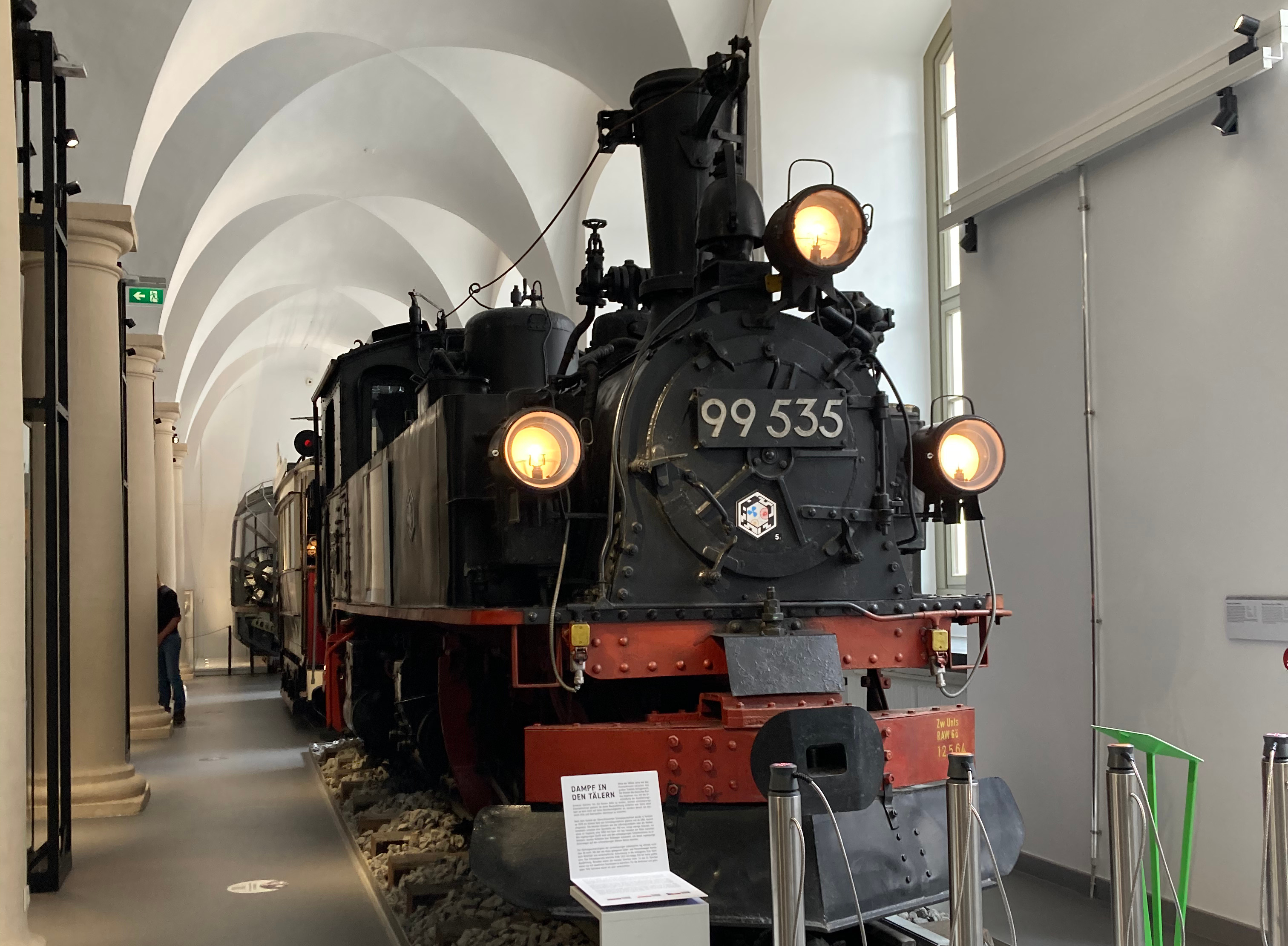 Старейший полностью сохранившийся немецкий локомотив «Muldenthal», построенный в 1861 году. А также персональный вагон-салон Саксонской принцессы Матильды 1885 года.
