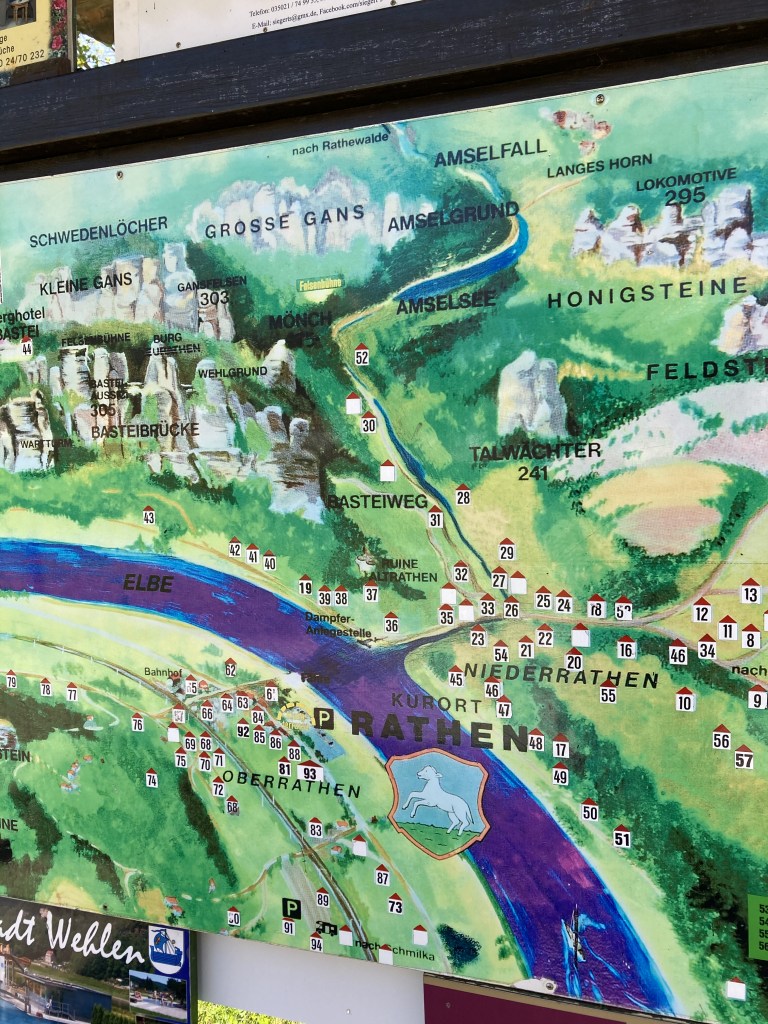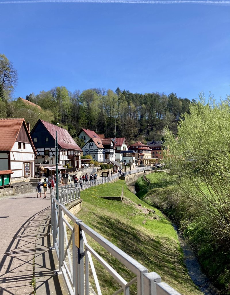Название Rathen происходит от древнеславянского Hrad, что означает «крепость». Население Ратена — около 500 человек. Я могу себе только представить, что здесь происходит в обычные докоронавирусные времена — там много уютных кафе и ресторанчиков, гостиниц и гостевых домиков. К слову, отсюда начинается сразу несколько популярных маршрутов. Один из них — к скалам и мосту Bastei.
