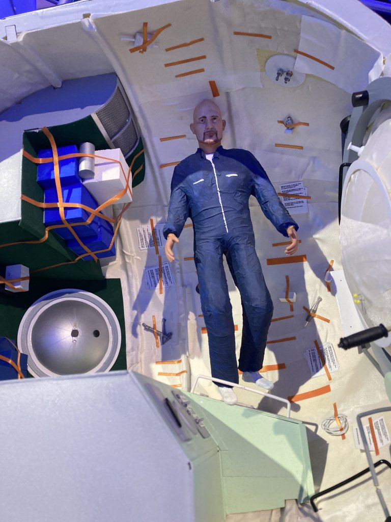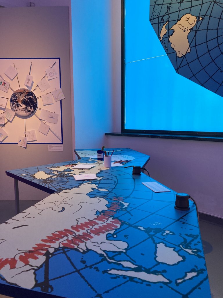 На выставке много интерактива: можно посмотреть в телескоп, послушать музыку „из космоса“ и даже поуправлять космическим кораблём. Есть и отдельные игровые места для детей: книжный уголок с детскими энциклопедиями про космос, возможность нарисовать „послание в космос“ или сделать оригами, а также посмотреть мультики.