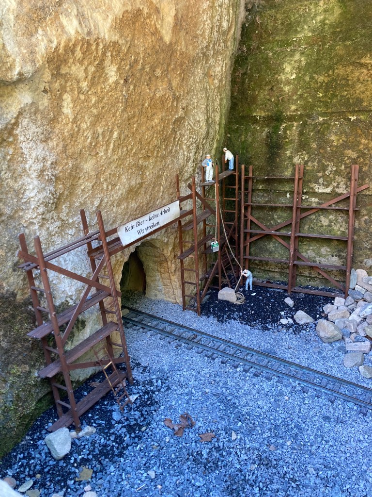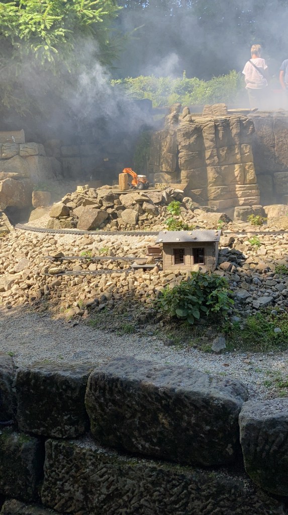 На территории в 8000 кв .м. расположены самые главные достопримечательности Саксонской Швейцарии в миниатюре, табличка с подробной информацией о них, но не только. Нажимаешь кнопку и место словно оживает — едет под музыку трамвай Криничталь, начинает движение повозка с лошадьми или поезд. Тут же рядом слышен грохот и поднимается дым — это показана, как идёт добыча в каменоломне.