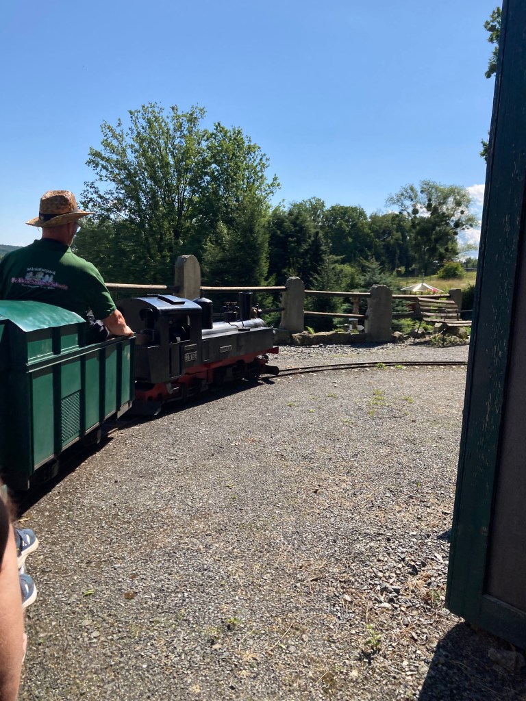 Ну а самое главное — через весь парк проходит мини-железная дорога с паровозом, на котором могут кататься и дети и взрослые! 😉 Проезд на паровозе входит в стоимость входного билета.