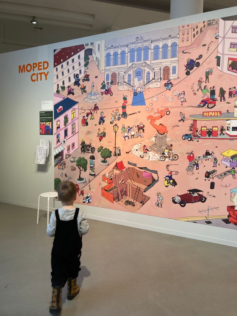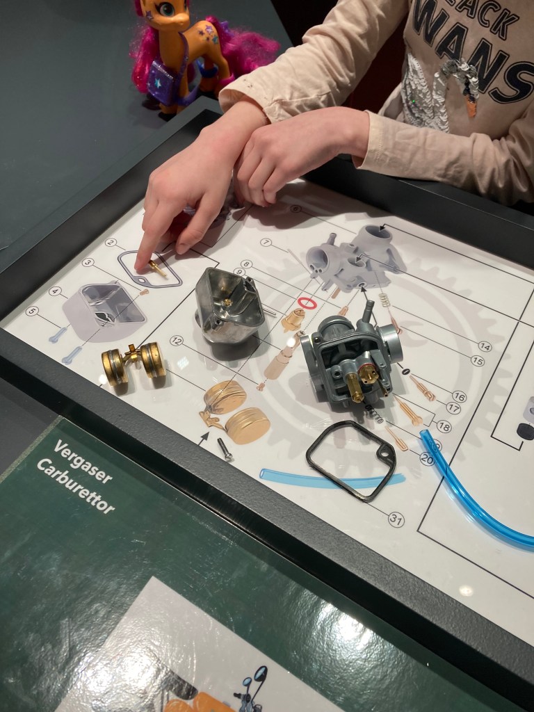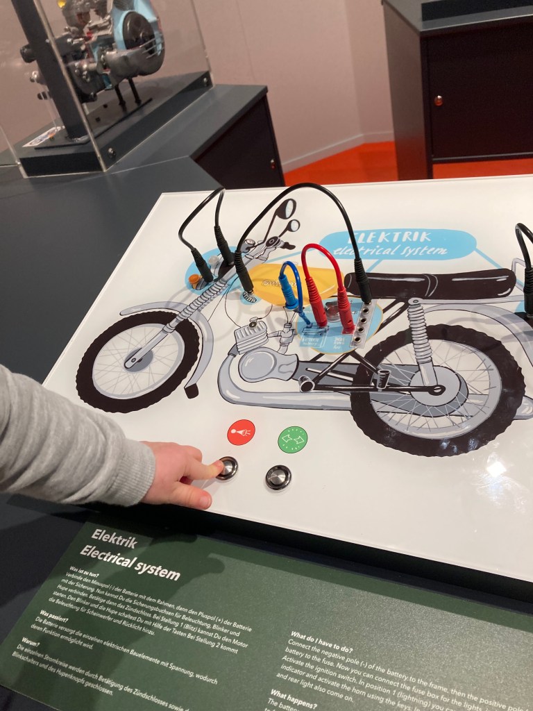 Детям здесь тоже понравится, так как много интерактива и игровых «станций», предназначенных именно для юных посетителей. Можно сделать фото, сидя на настоящем Simson-мопеде, покрутить колесо, «поковыряться» в деталях (как настоящих, так и игрушечных). Можно посмотреть мультик про Зандменхена на ретро-телевизоре (этот человечек тоже любил ездить на мопеде) или послушать звуки мотора разных моделей Simson.