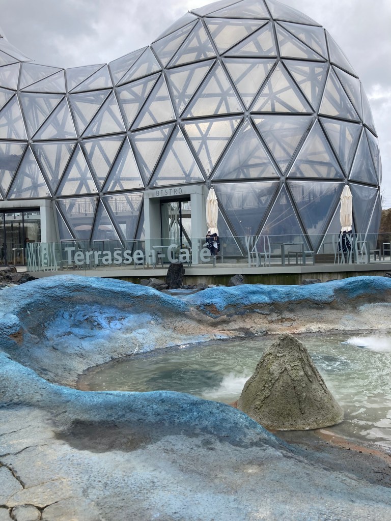 Проходим через турникеты и оказываемся в первой зоне — Ursuppe. Здесь нам показывают, как начиналось зарождение Земли 540 миллионов лет назад — из вулкана вырывается лава, все дымит и грохочет.