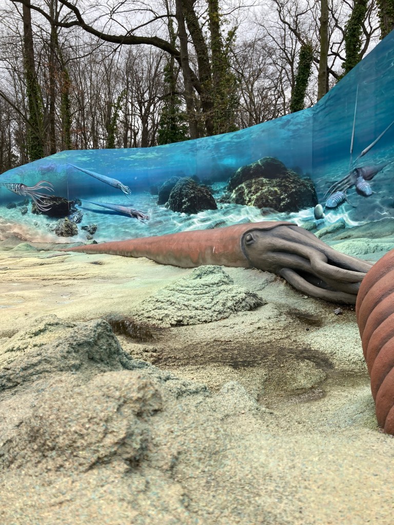 Далее попадаем в «подводный мир», представляем, что ходим по морскому дну и рассматриваем его древних обитателей. Здесь же есть есть мини-кинозал — Dinorama, в котором показывают фильм о жизни динозавров. Рядом — еще одна классная детская площадка, но взгляд падает на 27-метрового барозавра и на две рядом стоящие горки (такой же высоты). У кого хватит смелости оттуда скатиться? Также тут находятся „лабиринт“ и стена для скалолазания.