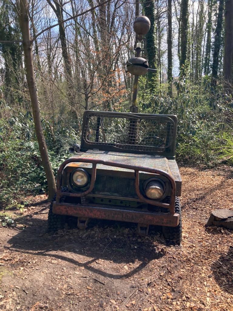 Идём дальше, изучаем фигуры динозавров. Кстати, советую приобрести на кассе специальную книжечку с подробным описанием каждого динозавра, очень увлекательно! Проходим мимо Forscher Camp, где другие дети „раскапывали“ в песочнице „кости динозавров“, и оказываемся перед входом в „Затерянный мир“. Уже по его виду и звукам оттуда доносящимся, понимаем, что это развлечение для любителей пощекотать себе нервы. Но не переживайте, детям здесь было не страшно, а очень даже любопытно — посидеть в старом джипе, зайти в заброшенную секретную лабораторию, найти яйца динозавров…