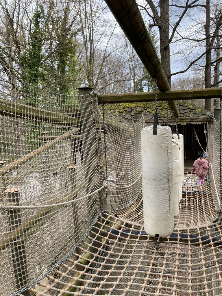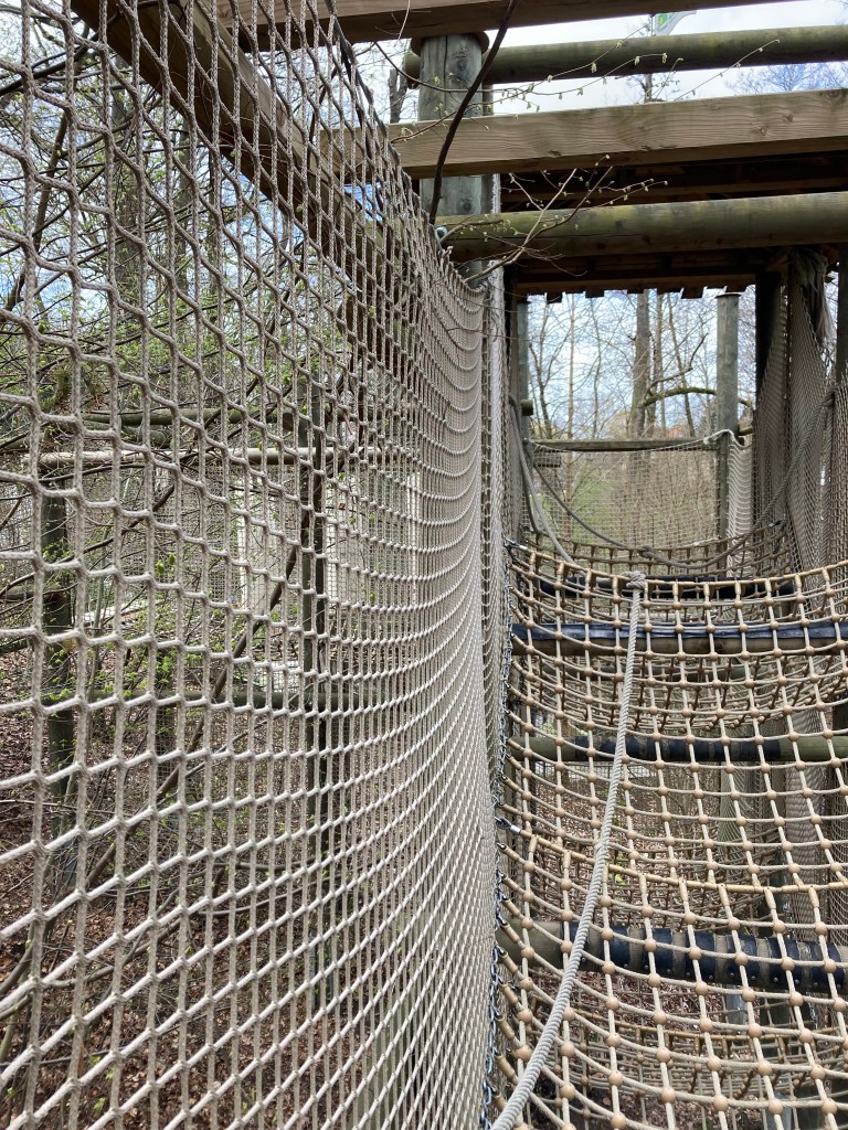 Далее, возле озера, нас ждёт огромный верёвочный парк, в котором можно зависнуть (в прямом и переносном смысле) надолго. Как вознаграждение за удачное прохождение веревочной полосы препятствия — покупаем себе шарик мороженого в киоске неподалёку.