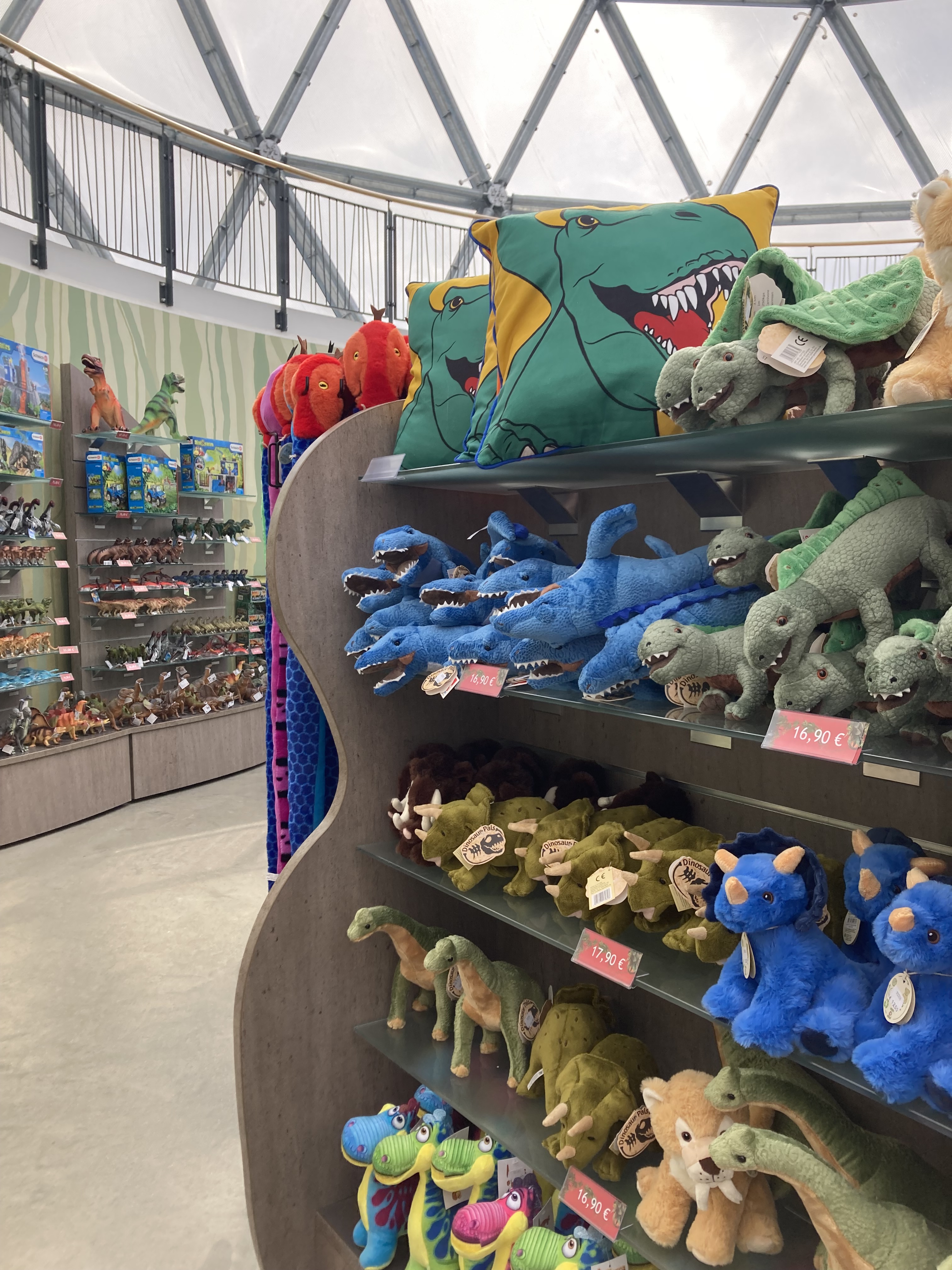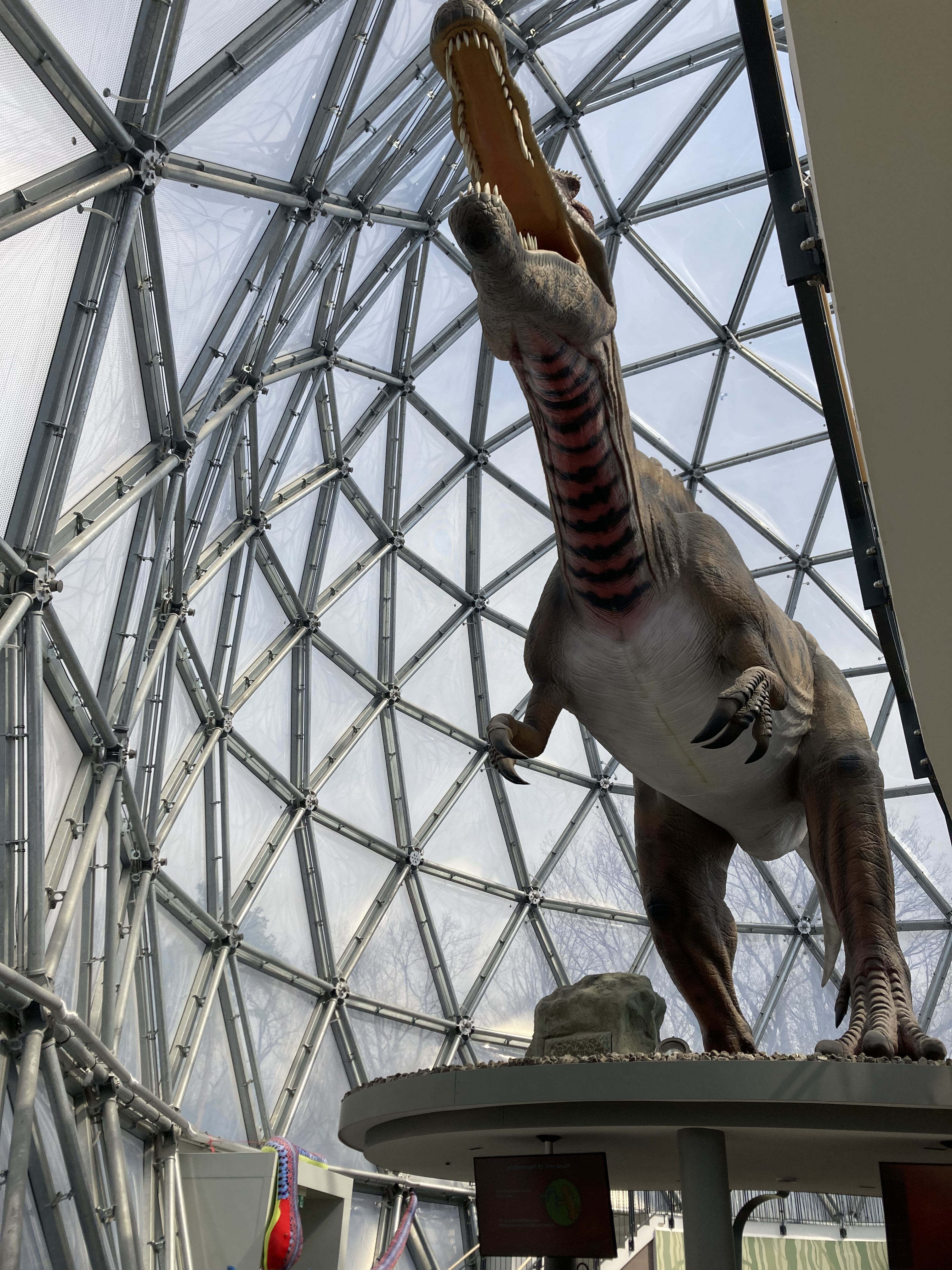 Итак, мы на месте, заходим в главное здание — Mitoseum. Здесь находится касса, сувенирный магазинчик, бистро и детская игровая комната, а также огромный рычащий спинозавр.