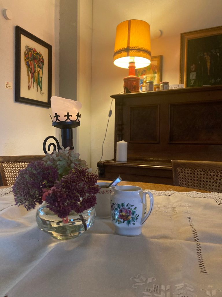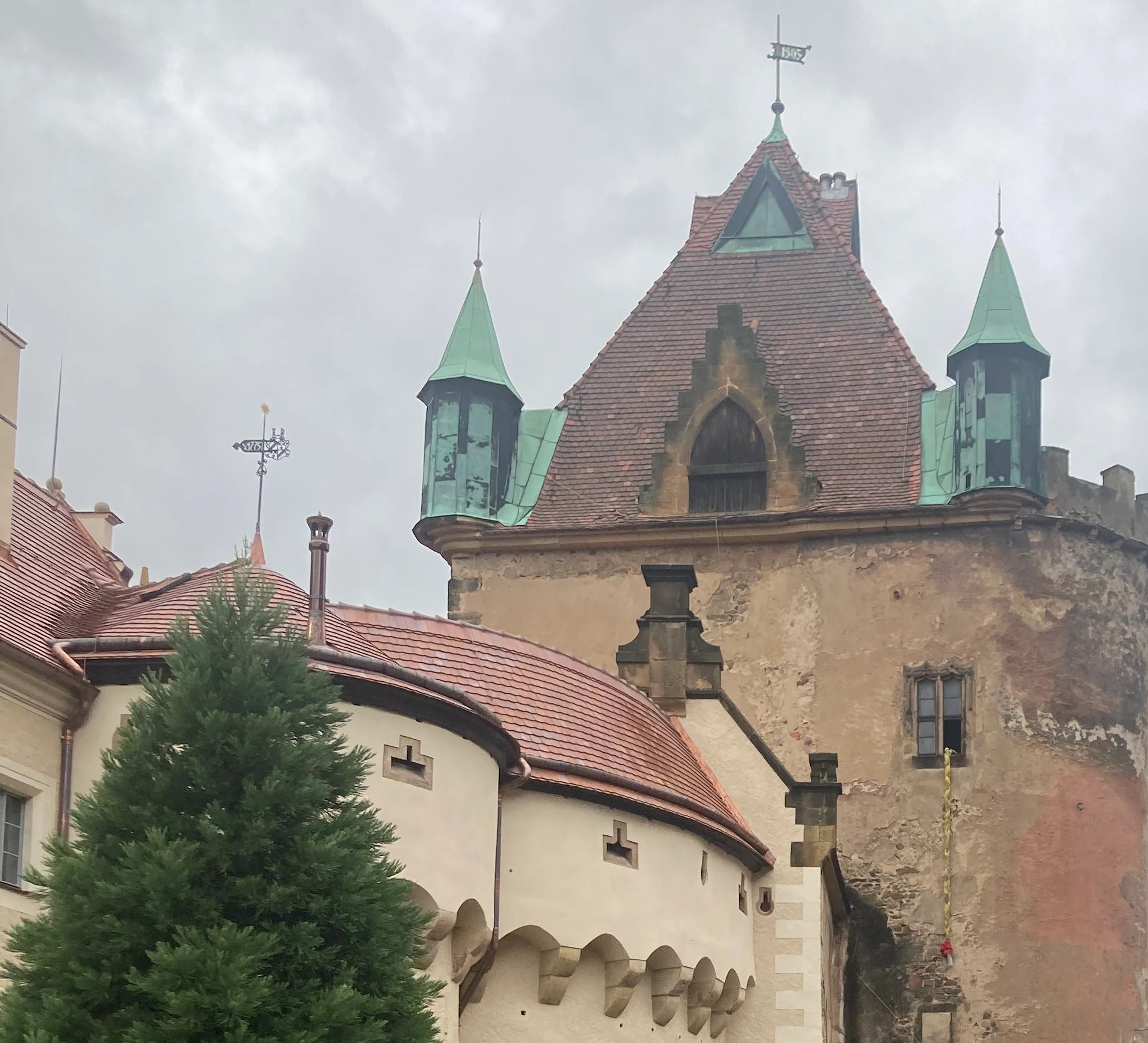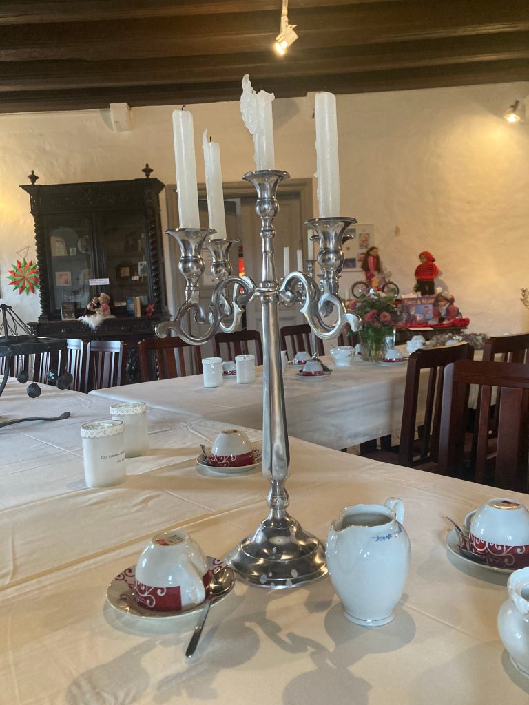 В замке есть уютное кафе с какао, кофе и тортиками.