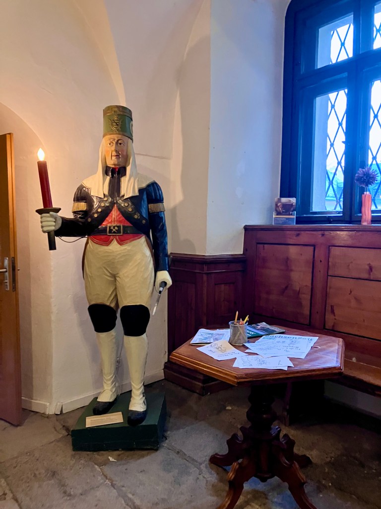 ⭐️ Erzgebirgsmuseum с шахтой для посетителей „Im Gößner» расположен прямо напротив знаменитой Анненкирхе. Выставка посвящена истории Аннаберга и Буххольца (горное дело, чеканка монет, скульптуры и картины дореформационного периода, первые издания трудов Лютера, письма об индульгенциях…). Но, пожалуй, главное приключение — это посещение настоящей шахты! Мы спустились на глубину 24 метров и посмотрели как добывали серебро в самом центре Аннаберга в средние века. Детям очень понравилось!